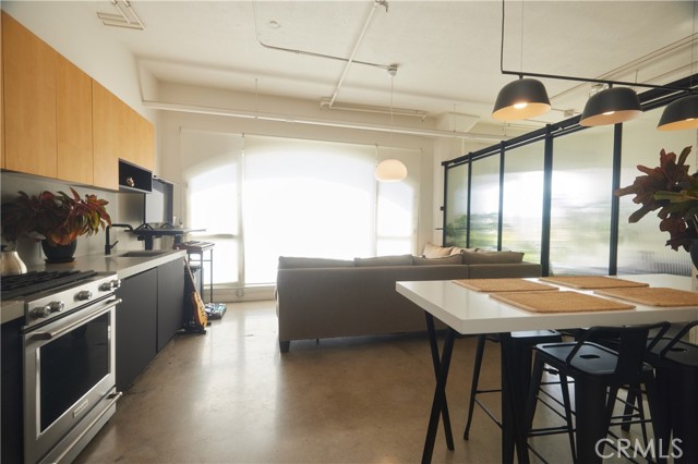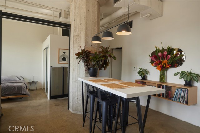 In the historic gothic revival style Textile Center Building built in 1926, this light-filled, sophisticated classic loft in the vibrant community of the fashion district has excellent access to everything downtown Los Angeles has to offer. The home has been expertly remodeled with an architect’s eye incorporating a gorgeous steel and glass panel separating the space into distinct sleeping and living areas. Polished concrete floors and curved original vintage floor to ceiling windows give the space the unique character and charm any design-minded enthusiast would appreciate. A custom build breakfast bar within the recently renovated minimalist kitchen featuring designer lighting from A+R, completes the picture in this beautiful turn-key loft. A rare assigned parking spot, as well as a separate storage area for all of your extras is also included, but you’ll rarely need a car with a 98 walk score in this neighborhood. Within minutes you’ll find great coffee at Civil Coffee or Verve, amazing local food at spots like Sonoratown Tacos and Holy Basil Thai. The LA Flower Mart is right across the street plus conveniently located to Whole Foods, Poppy and Rose, Grand Central Market and many, many other fantastic restaurants, bars and venues. Huge plus is the building is located within the Santee Village which allows Textile Center loft residents exclusive access to many amenities including several rooftops to watch fireworks, rooftop pool and hot tub, fitness center, and BBQ facilities. The Textile Center Building has been recognized as a registered historic building at both the local and national levels, and with this comes the Mills Act approval which means big savings on property taxes. Welcome to the best of modern, walkable downtown living!