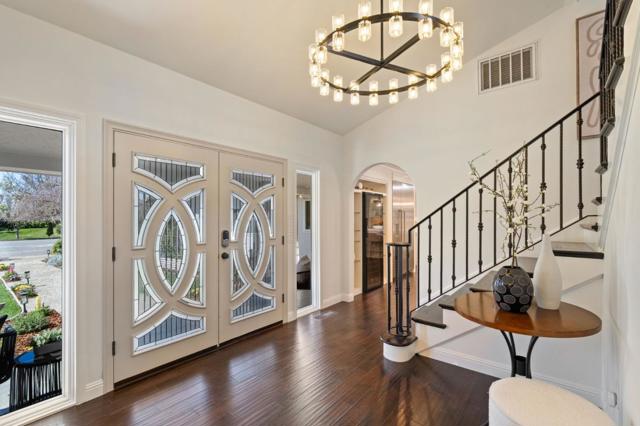 Stunning South Willow Glen custom home, meticulously rebuilt in 2018 with premium materials, designed for indoor-outdoor living. Grand entry with a dramatic staircase opens to an impressive foyer where a statement chandelier sets an elegant tone. Sun-drenched great room with skylight flows into the chefs kitchen with quartz countertops, custom cabinetry, Thermador appliances, and walk-in pantry. An oversized island with wine fridge overlooks the dining area and family room, perfect for everyday living and entertaining. A separate living room adds flexibility and elegance. Designed with versatility, the home features a rare dual primary layout with 2 spa-inspired suites, each appointed with rain showers, dual vanities, Hansgrohe fixtures. The large main-level suite offers a soaking tub and walk-in closet. The upstairs retreat offers his-and-hers closets and serene treetop views. Owned solar, EV ready, dual climate control, separate water heaters, water softener, updated electrical, plumbing, and HVAC, 50-year roof and epoxy garage. The private backyard is thoughtfully designed with custom fire pit island, outdoor kitchen, water fountain, TV and Bose sound system. Minutes to DT Willow Glen, parks, Schallenberger Elementary, Hacienda Magnet School, and Oakridge Mall with 99 Ranch.