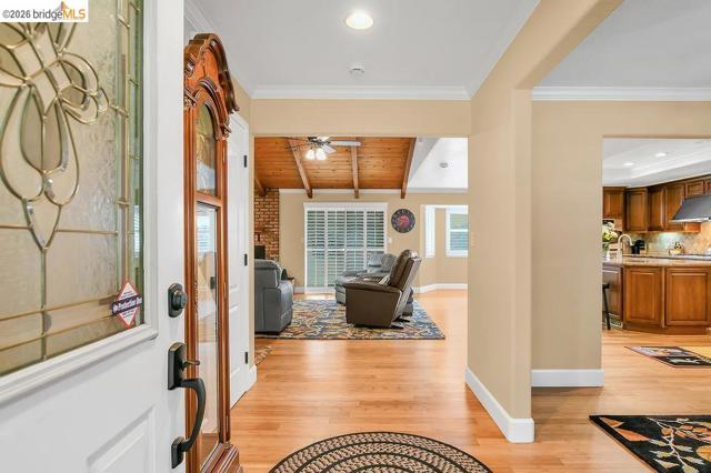 Tucked into one of Oakley’s more spacious residential pockets, 4190 Brown Rd offers a rare blend of country scale living with suburban convenience. Rare opportunity to have a 1 acre ranchette home zoned Oakley Schools. Situated at the end of the road, close to walking trails, parks and schools. The large single story home features beautiful bamboo floors throughout and vaulted ceiling. The open floorplan has the family room and kitchen, perfect for entertaining. Whether your guests are looking to dine in the formal dining room, large kitchen island, it will offer the perfect flow for all crowds. Need more space, there is an additional outdoor dining area as well. You will love the manicured yards and fruit trees for your morning coffee. This home has been upgraded with new exterior paint, new interior paint and new shutters. Primary suite with it's contemporary tranquil paint, coffered ceiling and crown molding. But wait there is more! If you want to have room for all your toys, this place has an oversized 3 car garage, lots of room for parking PLUS a shop! Property is on public utilities but still has a well to keep those water bills down and still water the landscape.