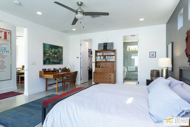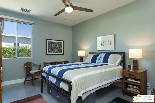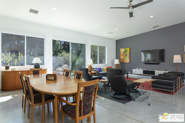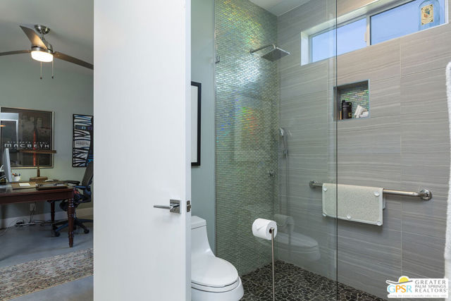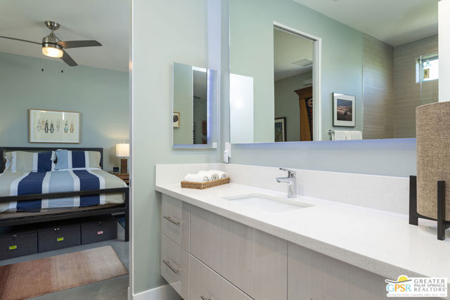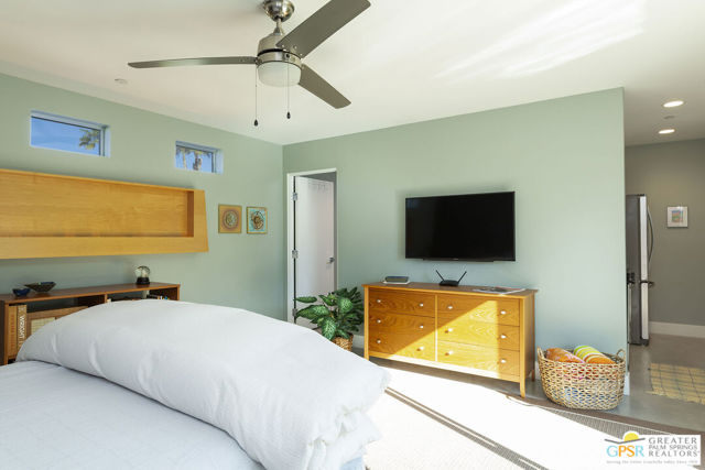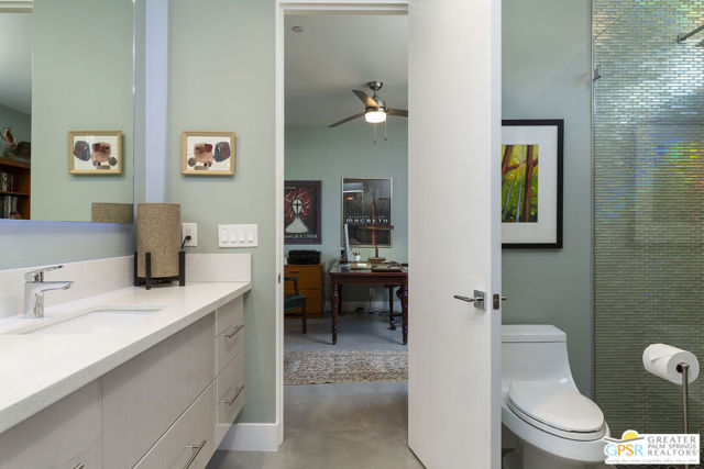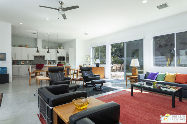 Step into this sophisticated home offering clean, unobstructed spaces and soaring ceilings. Polished concrete floors provide easy maintenance. Mountain views, especially in the main living area, are stunning. Hunter Douglas window blinds (remote-controlled in the main living area) are installed throughout the home. The home was completed with numerous custom finishes. Smart LED lighting appears throughout the home. High energy standards are present using efficient HVAC systems 2 zones in main house, and 1 split unit each in the Casita and garage plus 42 three-by-five-foot owned solar panels! The large chef's kitchen has plenty of counter space, plus a large island, all with quartz countertops. Stainless steel appliances are accented by a custom tile backsplash. Kitchen area lighting can create multiple moods and provide different entertaining options. Built-in CAT-5 wiring provides listening and viewing capability throughout the home. A large TV with the attached Sonos bar can provide audio entertainment throughout the home. The indoor laundry room is situated near the side entry door, close to the pool area convenient for drying those pool towels! The front covered patio, between the garage and the house, offers outdoor dining in the shade and entertaining poolside. The patio area in the rear is ideal for evening dining under the stars or sitting round the built-in fire pit with friends. Professional landscaping is featured in both the front and back yards. An oversized, 3-vehicle garage is large enough for your SUV or classic car. All full bathrooms feature walk-in glass and tile showers as well as grab bars for safety. The Casita, separated from the home and garage by the entrance gate, is ideal for family, guests, or rental, and features a galley kitchen with a full-size refrigerator. Need extra space to cook for larger gatherings or catering setups? You are set! Many additional features await your visit to your new home!