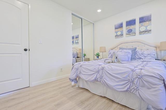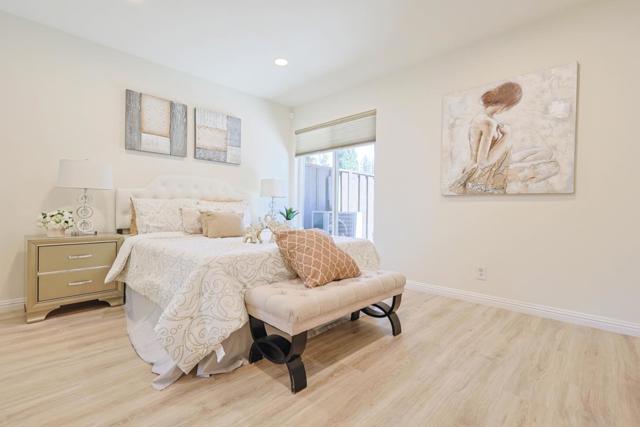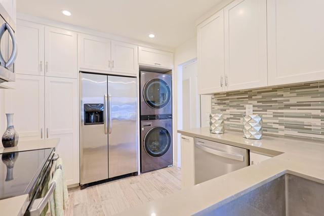 Beautiful remodeled single story end unit. Enter through the gate to a private patio/courtyard where you can enjoy outdoor living on the pavered patio. Enter into the living room accented by sliding doors to the front patio plus a dining L. The efficient kitchen has been remodeled withbeautiful white cabinets, Quart counters, glass backsplash, oversized stainless sink, corner cabinets fitted with lazy susans, pantry with pull-out shelves and beautiful tile floor with the look of hardwood. An inside stacking washer and dryer are conveniently located in the kitchen. The bathroom has been remodeled featuring a custom shower with a frosted glass door & pebble-style tile floor. The master bedroom has mirrored doors on the closet as well as built in books shelves. Attic space for extra storage is accessed with a pull-down staircase. Within the past 2 years, a new water heater was installed, a new furnace and the addition of central air conditioning. Come and see!