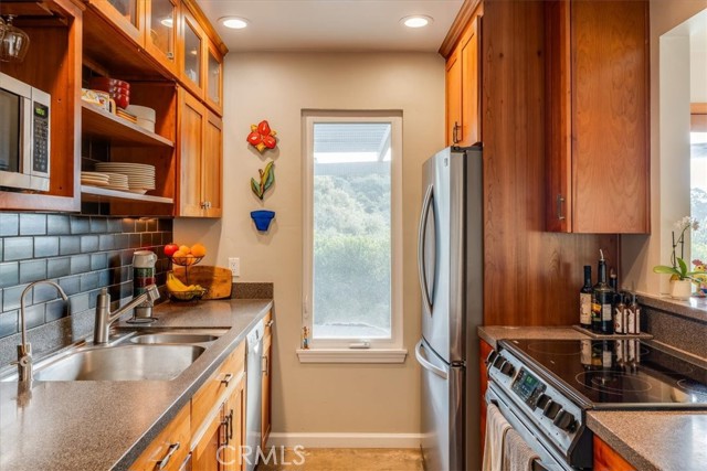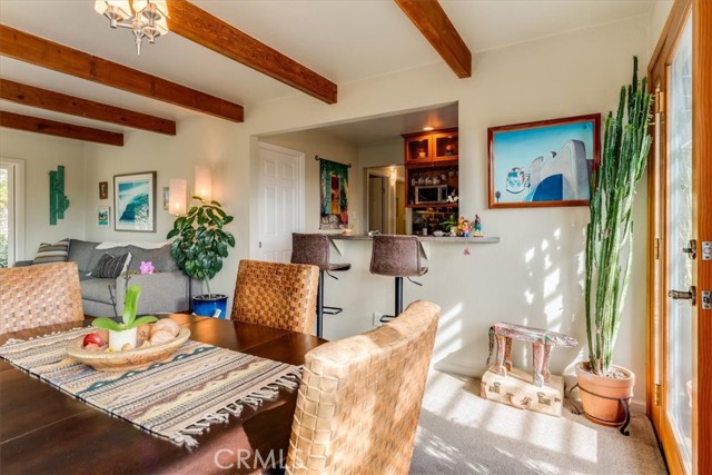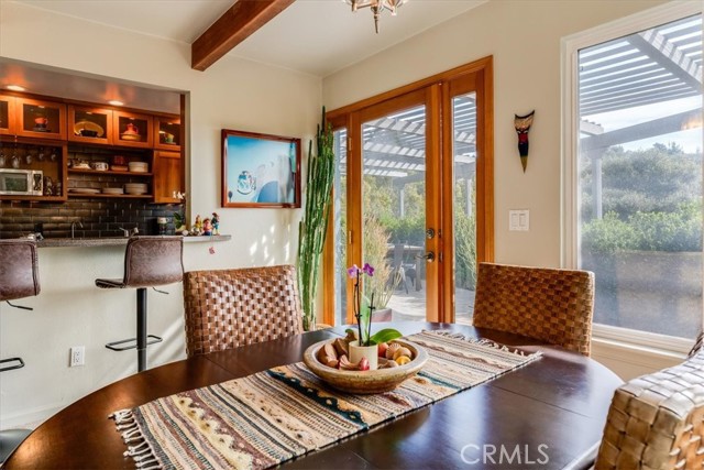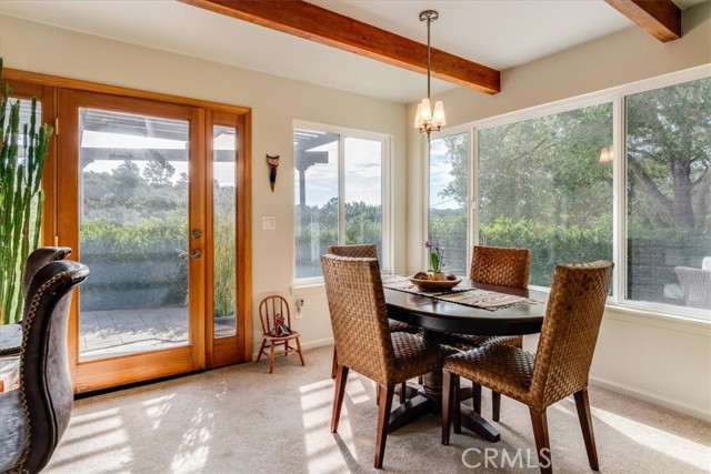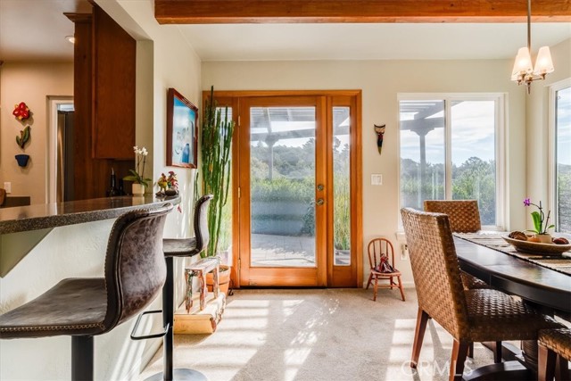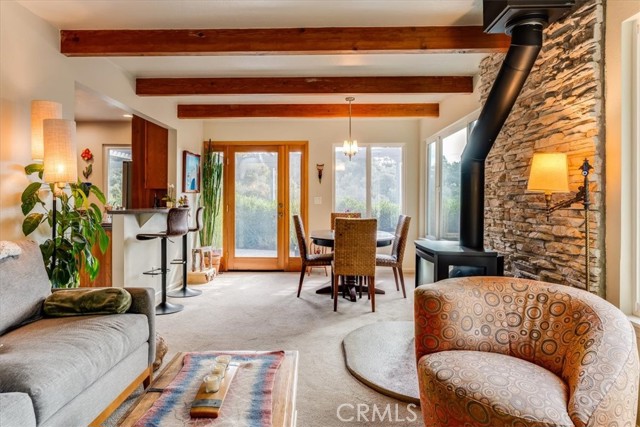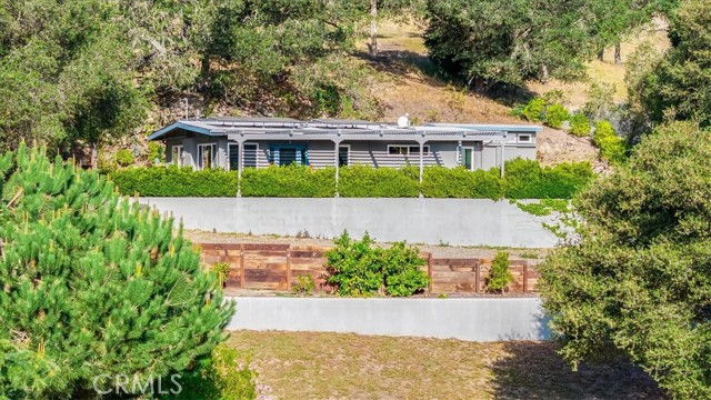 Tucked away at the end of Corralitos Drive on a private, oak-studded acre, this beautifully updated Arroyo Grande home offers peaceful Central Coast living just minutes from the Village of Arroyo Grande, San Luis Obispo, several local wineries, Lopez Lake, and the coast. This thoughtfully designed home features exposed beam ceilings, abundant natural light, and inviting living spaces that open to the outdoors. The main living area is centered around a freestanding fireplace set against a natural stone wall, creating a focal point that feels both refined and welcoming. A beautifully updated kitchen offers rich custom cabinetry and bar seating, while the spacious bath includes dual sinks and a walk-in shower with two shower heads. The grounds include mature trees, refreshed landscaping, multiple patios, and a detached shed with a finished wine room. Recent upgrades include a newer roof, solar panels, an upgraded propane heater and electrical panel, key water system improvements, and a 30-amp/50-amp service for EV charging or added flexibility. Don’t miss this rare opportunity to own a truly special property that offers privacy, a strong connection to nature, and a peaceful lifestyle in a highly sought-after area of the Central Coast!