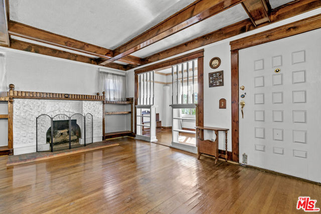 Step into this timeless vintage charmer filled with original character and craftsmanship. This home showcases beautiful coffered ceilings, custom built-ins, and rich wood details that highlight its classic appeal.***Featuring a functional layout with 2 BEDROOMS, a BONUS ROOM**, PLUS A DEN**, this home offers versatility for families, remote work, or creative use of space. Enjoy a modern kitchen, double-pane windows, original hardwood floors and private laundry room ***Situated on a corner lot with alley access, this property provides ample parking flexibility and INCLUDES A DETACHED STRUCTURE that can be used as a WORKSHOP with extra storage, perfect ADU POSSIBILITIES. *** This home is great for both families and investors. This property is ideally located just minutes from DTLA, USC, BMO Stadium, and the upcoming George Lucas Star Wars Museum. Located in a rapidly developing pocket of the city with strong investment potential.Don't miss the opportunity to own a piece of LA history with endless possibilities!-images digitally enhanced to showcase potential of the home.
