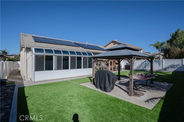 This stunning 3 bed / 3 bath home has been fully remodeled and comes with a rare bonus: a front casita that can be used as a rental unit, office, studio, gym, or private guest space. Fresh upgrades flow throughout the home, offering move-in-ready comfort and modern style. The exterior has been completely revitalized with new vinyl fencing, new concrete, updated drainage, and a beautifully redesigned backyard perfect for gatherings, pets, or relaxation. Enjoy low utility costs with owned solar panels. A spacious two-car garage, oversized driveway, and large yard provide abundant parking and outdoor possibilities from hosting events to adding future features. Whether you're looking for income potential, extra living space, or a flexible multi-use layout, this property truly has it all. Recently Remodeled complete backyard renovation, New Turf , New Drainage under turf and throughout backyard. New Stones and cement retaining walls and brand new vinyl fencing to separate not only the yard but the front casitas yard to the main houses yard. New Solar Panels. Come Check This Beauty out!