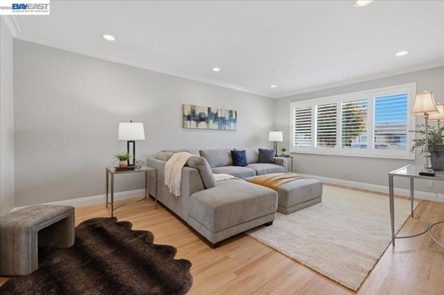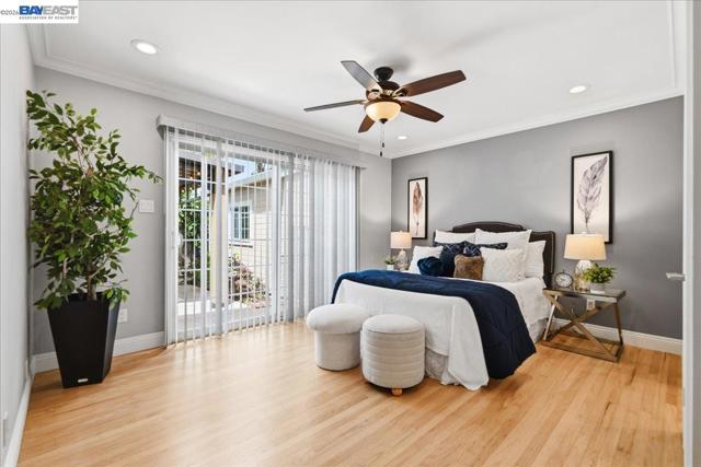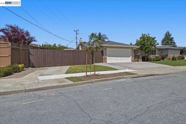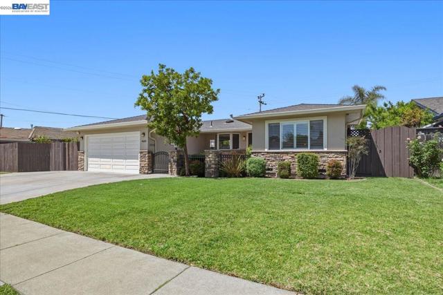 Welcome to this beautifully upgraded single story 4BD/2BA home in Fremont’s desirable Irvington neighborhood. Move-in ready with beautiful refinished original oak flooring, recessed LED lighting, crown molding, newer doors, and abundant natural light from custom skylight tunnels. The updated kitchen features custom wood cabinetry, granite countertops, 36" gas cooktop, built-in oven/microwave, prep sink, Insta Hot water tap, and breakfast nook. The family room offers a gas fireplace, built-ins, wine bar, and surround sound. Private rear bedrooms include a spacious primary suite with walk-in closet, custom dual sinks, and backyard access. Upgrades include newer windows, exterior paint, newer shutters, and updated baths. Garage with sink, storage, and 200-amp panel. Front fenced courtyard with stack stone facade, developed side yard RV storage access, 12 x 14 gazebo, stamped concrete, artificial turf in the rear, and a dog run. Front/back irrigation with WiFi control and prewired for low voltage landscape lighting. Covered patio, and powered shed. Home sits on a 7,140 sq ft lot on cul de sac, close access to interstate 880 and 680, with short walks to Harvey Green Elementary and Irvington High School