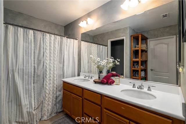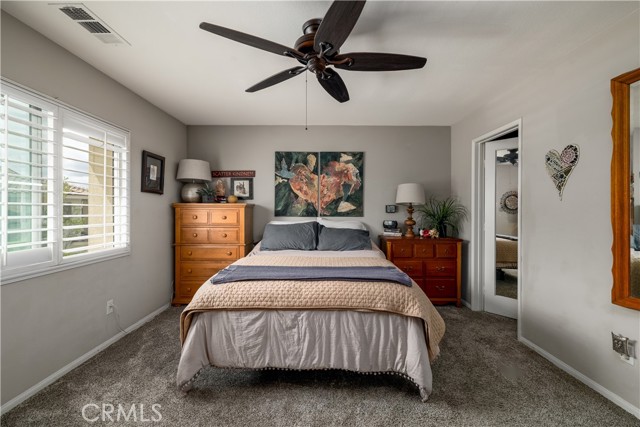Experience a home designed for both elegance and effortless living. As you step inside, you’re greeted by the warmth of real wood floors that stretch across a layout that truly flows well, seamlessly connecting the formal and casual living spaces. The kitchen boasts granite countertops. The windows are framed by classic plantation shutters, offering a perfect balance of privacy and natural light. The crown jewel of this floor plan is the two primary bedroom suites, which provide a level of versatility, whether you need a dedicated space for multigenerational living, a high-end guest retreat, or a luxurious home office, these dual sanctuaries ensure everyone enjoys their own private oasis. Living in Harveston, you are part of one of Temecula’s most prestigious master-planned communities. Life in Harveston means morning strolls along the 1-mile lakefront trail, weekend boat rentals at the Harveston Lake House, and cooling off at the junior Olympic-sized pool and splash park.