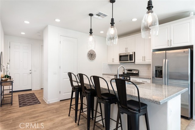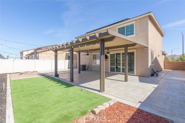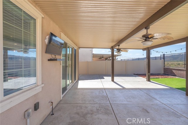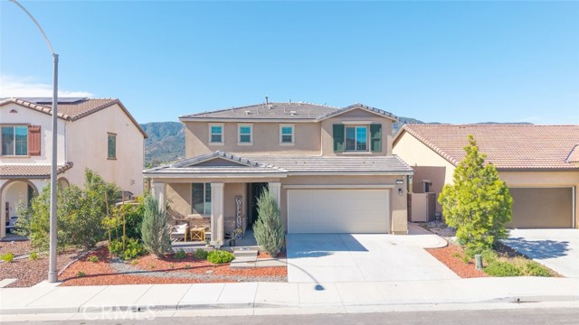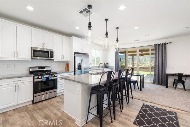 Welcome to 29077 Soraya in the highly sought-after Summerly community of Lake Elsinore! This beautifully upgraded home offers 1,929 sqft of modern living space, featuring 4 bedrooms and 3 bathrooms, including a full bedroom and bath downstairs, perfect for guests, in-laws, or a home office. Step inside to an open-concept floor plan designed for both everyday living and entertaining. The spacious kitchen is the heart of the home, showcasing crisp white cabinetry, granite countertops, stainless steel appliances, a stylish tile backsplash, and a large center island that flows seamlessly into the family room, complete with built-in surround sound for the ultimate movie or game night experience. Upstairs, you’ll find well-appointed bedrooms and a functional layout that maximizes comfort and privacy. Head outside to your private backyard retreat featuring a premium lot with no rear neighbors. Enjoy year-round outdoor living under the Alumawood patio cover with two ceiling fans, relax around the gas fire pit, and appreciate the low-maintenance turf landscaping. This home is also energy-efficient with 25 paid-off solar panels and TWO Tesla Powerwall battery packs, helping you save on utilities while staying powered up. Only five years old and loaded with upgrades, this Summerly gem checks all the boxes. Close to parks, pools, clubhouse, and all the amenities Summerly has to offer.
