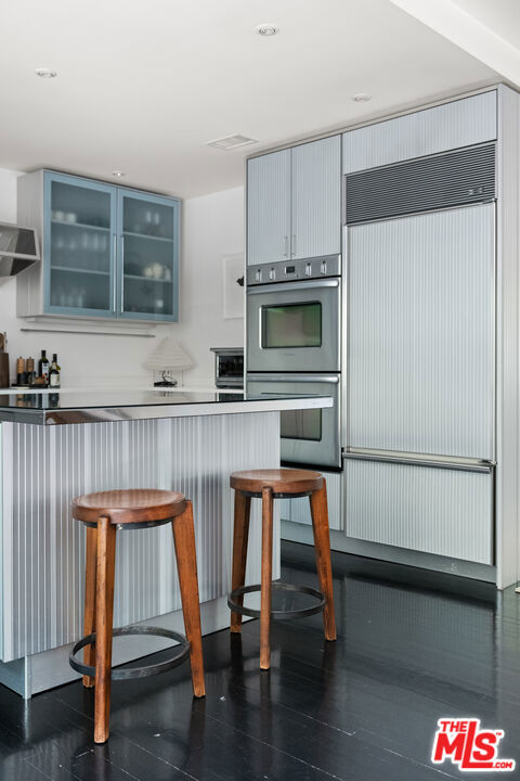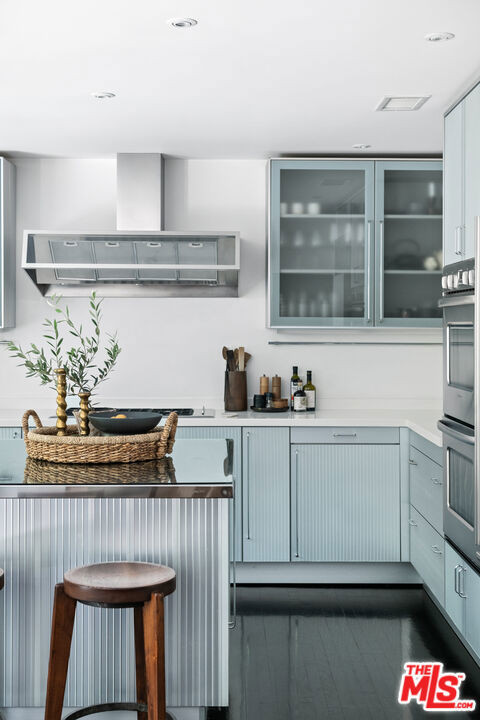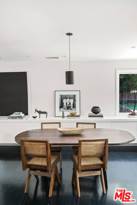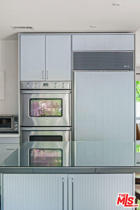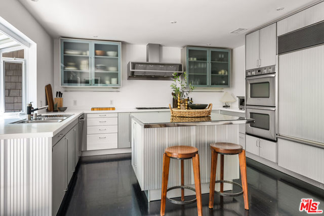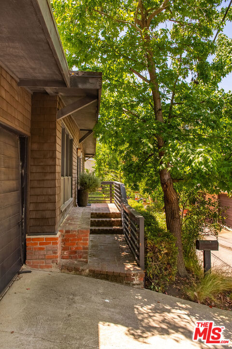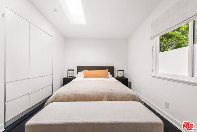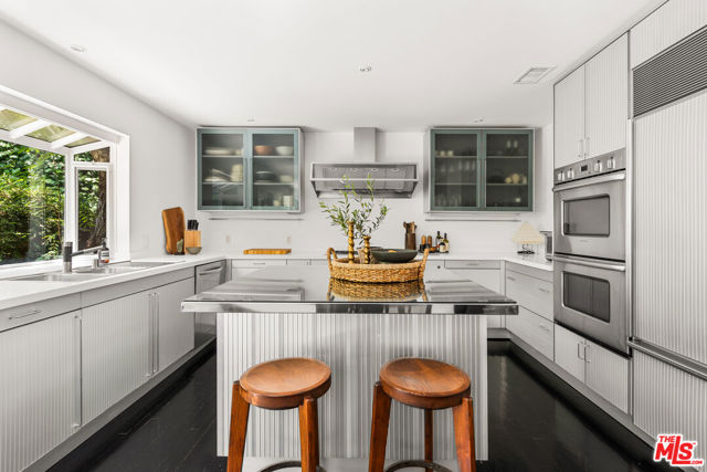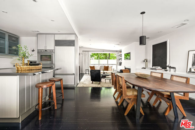 Tucked away on a serene lane off Benedict Canyon, this exquisite single story two bedroom, two bath traditional cottage offers the perfect blend of rustic charm and cutting-edge design. Set on just over one-third acre lot, the 1,300 square feet residence is a private urban oasis surrounded by lush greenery and terraced gardens. Inside, dark hardwood floors and sleek modern updates elevate every space. The show-stopping Linea chef's kitchen features a rare Italian Driade installation in anodized aluminum, paired with top-of-the-line appliances and custom cabinetryan entertainer's dream. Carrara marble bathrooms add a touch of luxury, complementing the home's refined aesthetic. The open-concept living and dining areas flow seamlessly to a tranquil rear patio, ideal for al fresco dining or quiet reflection. With its seamless integration into the leafy, tree-lined surroundings of Benedict Canyon, this home offers high-style modernism in one of Beverly Hills' most coveted zip codes.