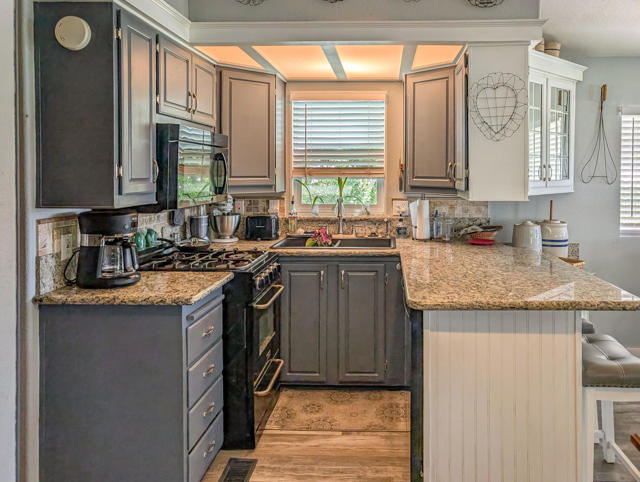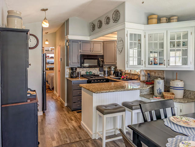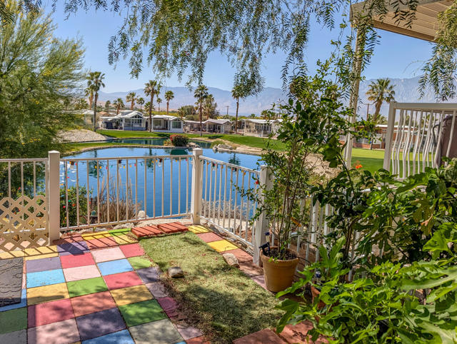 This extensively renovated 2-bedroom, 1-bath park model home encompasses approximately 800 square feet and features impressive mountain views along with pristine water features, situated on the 4th hole of the golf course. The property includes a well-designed two-car covered carport and golf cart, complemented by a California room constructed with quality craftsmanship and tasteful updates throughout, such as granite countertops, dishwasher and updated plumbing. Additional recent improvements include updated flooring, an upgraded HVAC system, a new hot water tank, appliances, and ceiling fans. The spacious covered deck and private yard are ideal for entertaining or relaxation, and an outdoor heater provides comfort on cooler evenings. Located within the premier 55+ Caliente Springs Resort, residents enjoy access to exceptional amenities including a mineral hot spring-fed pool and spas, a state-of-the-art fitness center, a 9-hole golf course, eight pickleball courts, tennis courts, laundry facilities, a library, and a vibrant community environment. Space rent is $950 per month; lot ownership is not included.