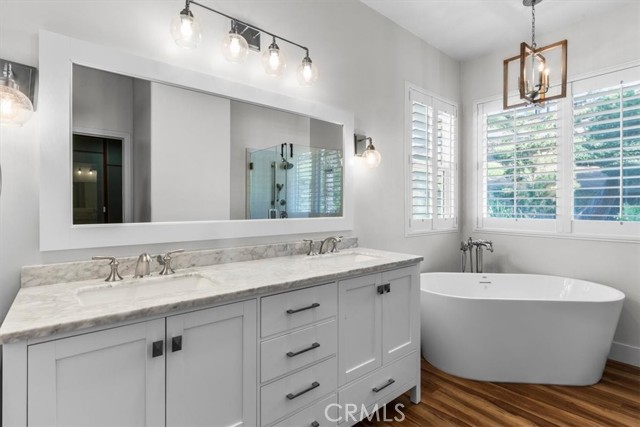 Extraordinary opportunity awaits with an assumable 3% VA loan! Welcome to 2108 Jeremy Pl, a hidden gem in the heart of Escondido. This beautifully updated 4-bedroom, 3-bathroom home seamlessly combines modern elegance with thoughtful design to create the perfect retreat. Step into an inviting open floor plan with high ceilings and abundant natural light streaming through energy-efficient Milgard dual-pane windows with plantation shutters. Stylish vinyl flooring flows throughout, while ceiling fans in every bedroom and living area ensure comfort year-round. The tiled kitchen is a chef's dream, featuring a marble island and countertops, soft-close cabinets and drawers, stainless steel appliances, and a touch sensor faucet. A charming greenhouse window adds personality and is ideal for herbs or plants.The main level boasts three spacious bedrooms with mirrored closet doors and ceiling fans. Upstairs, the primary suite is a luxurious retreat, complete with a custom walk-in closet, free-standing tub, and walk-in shower. Additional highlights include a newer roof, efficient HVAC system, and a well-designed layout with separate dining and living areas. Outside, your private backyard oasis awaits with a heated fiberglass-bottom saltwater pool and spa, enhanced by LED lighting for an enchanting evening ambiance. It’s the perfect space to relax, entertain, and create unforgettable memories. Located on a peaceful cul-de-sac, this home offers unmatched privacy and tranquility, all while being close to top-rated schools, parks, shopping, dining, and major freeways. To top it all off, solar panels provide enhanced energy efficiency and cost savings, making sustainable living a reality. Don’t miss out—schedule your showing today and experience this exceptional property for yourself!
