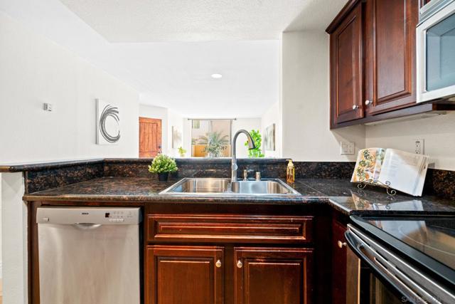 Step into this stylishly updated ground-level 1-bedroom, 1-bathroom condo nestled in the highly coveted Venetian complex, right in the heart of vibrant University City. Whether you're a student, busy professional, or simply seeking the perfect blend of comfort and convenience, this home checks all the boxes. The kitchen is a standout with its rich dark wood cabinetry, sleek granite countertops, and stainless-steel appliances—including a refrigerator, dishwasher, stove/oven, built-in microwave, and the added bonus of an in-unit washer and dryer. Need a moment to relax? Step out onto your private patio, the perfect spot to sip your morning coffee or wind down after a long day. The VA-approved Venetian community takes resort-style living to the next level with its sparkling pool and spa, tennis courts, a fully equipped gym, and more—all for an impressively low HOA fee of just $179/month, covering water, trash, and even internet. And the location? Unbeatable. You're just minutes from UCSD, trendy shopping and dining options, sun-soaked beaches, and major freeways, making this home the ultimate hub for everything University City has to offer. Don’t let this gem slip away, your ideal lifestyle awaits.