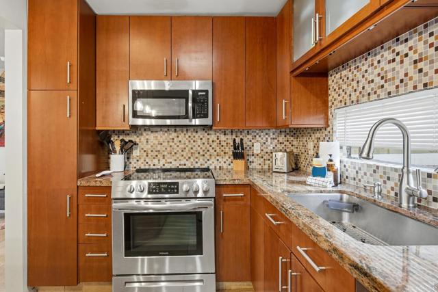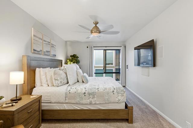 Sail Bay is truly unmatched located steps to the boardwalk and water— This beautifully appointed 2-bedroom, 2-bath condo is ideal as a primary residence or a vacation retreat. It features an open floor plan, a modern kitchen with granite countertops and stainless steel appliances, and a spacious living area that opens to a bay-facing balcony. Built in desk area with additional storage. Primary bedroom offers a walk-in closet with build-ins. Both bathrooms have been tastefully updated. Enjoy water sports like kayaking, paddleboarding, and boating right outside your door. Rent equipment from Mission Bay Aquatic Center, stroll over to the Catamaran for brunch, dinner, or spa treatments, and enjoy live music just steps away. You’re also within walking distance to local shops, restaurants, and even SeaWorld’s nightly fireworks. Additional highlights include one secured underground gated entry parking space and storage, a well-maintained complex with locked entry, a community spa, and low HOA dues.