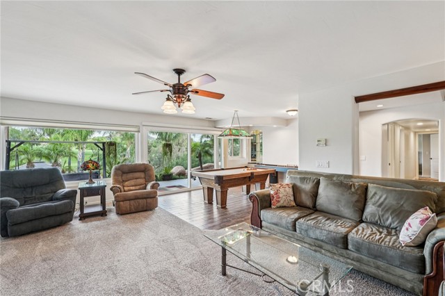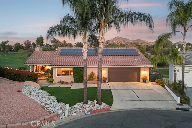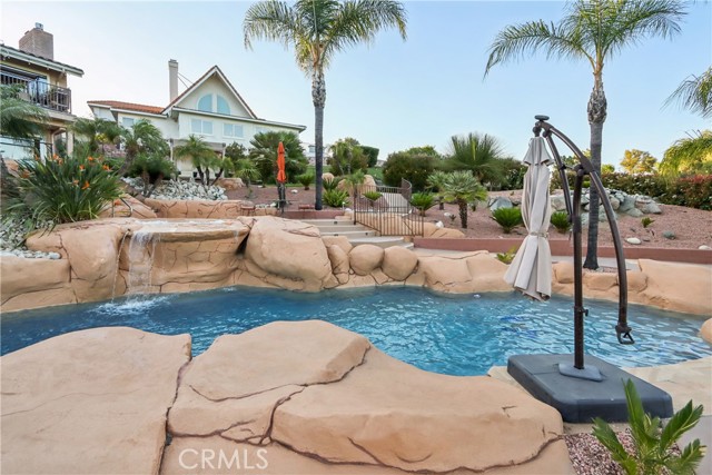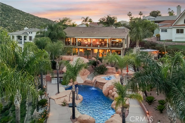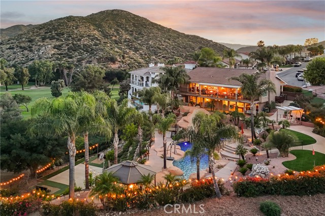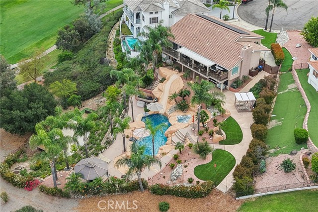 UNHEARD OF HALF ACRE LOT - END OF CUL DE SAC - ON THE GOLF COURSE - LUXURIOUS RESORT STYLE BACKYARD OWNED SOLAR AND ADDED PROPANE. It doesn't get better than this Gorgeous 3138 Square Foot Home! Welcome to a rare LUXURY OFFERING in the highly sought-after gated community of Canyon Lake. Situated at the end of a quiet cul-de-sac on an expansive Half Acre lot, this exquisite Home boasts breathtaking golf course views, backing directly to the 2ND GREEN AND 3RD FAIRWAY. This meticulously maintained 4-bedroom, 3-bathroom home is thoughtfully designed to live like a Single Story, with the Primary Suite and an additional Bedroom and Bathroom located on the Main Level. The Upper level showcases expansive windows that perfectly frame the stunning views, neutral 18" tile flooring with Carpet in the Bedrooms and a cozy gas fireplace anchoring the Main Livingroom. The Kitchen is HUGE and it has been remodeled with classic, dark wood cabinets, a deep Farmhouse double basin sink, Quartz Counters, Stainless Appliances, and a Breakfast Bar with seating for 2-3. The entire House has been freshly painted in “Spun Wool” by Behr and it has upgraded cordless blinds throughout. The Lower Level offers exceptional flexibility with two additional Bedrooms, a full Bathroom, a secondary living room that has a Wet Bar area and a wood burning fireplace, plus a dedicated laundry room—IDEAL FOR GUEST OR MULTI GEN LIVING. Step outside to your private resort-style oasis. The backyard is designed for both Relaxation and Entertainment, featuring a Saltwater Rock Pool with beach entry, Waterslide, Spa, and solar heating. There is a variable speed pump and the Pool Heater/Filter are only 3 years old! There is Turf in Front and Back, lush healthy landscaping on an automatic drip system for easy maintenance, and a small putting green along with a Basketball Court, Bocce Ball Area, and Horseshoe Pit, making this THE HOUSE TO ENTERTAIN AT! Additional highlights include OWNED SOLAR, added Propane, A new Roof in 2014, and a new upstairs HVAC system in 2018. There is an Attached 2 Car Garage and a Driveway with parking for 2 cars. This exceptional property combines LUXURY, PRIVACY, AND AN UNMATCHED LIFESTYLE. Come be a part of the Canyon Lake Community! You're going to love it here!
