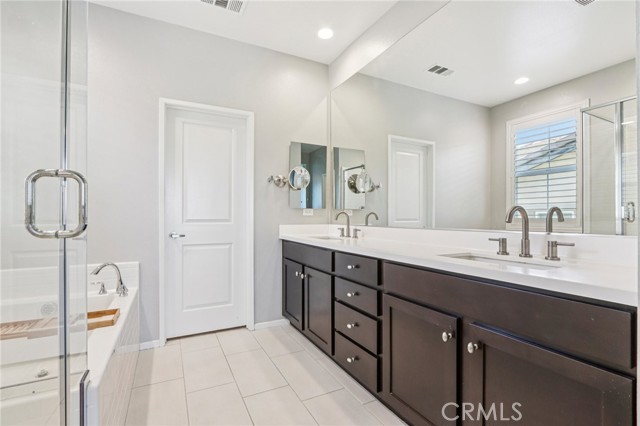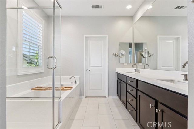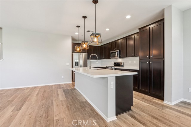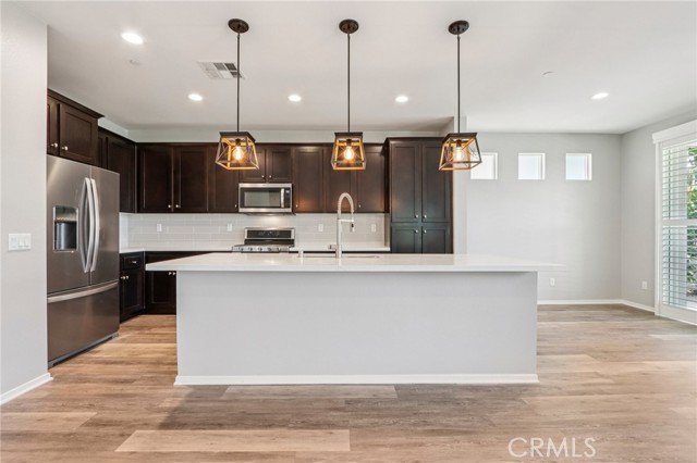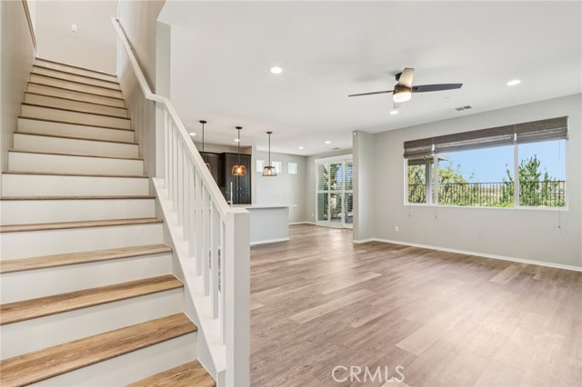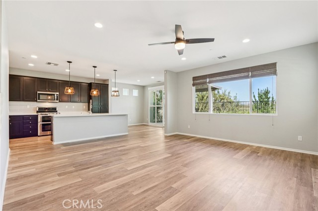 CUL-DE-SAC, TURNKEY, VIEW HOME, IN HIGHLY SOUGHT OUT TVUSD! Stunning view home in the desirable Calistoga community at Promontory in Murrieta. This 3-bedroom, 2.5-bath residence offers over 2,000 sq ft of living space with beautiful valley and sunset views. The home features Spanish-style curb appeal, drought-tolerant landscaping, and a private side entry. Inside, the open layout includes a spacious great room and family room with large windows that capture the scenic views. Interior finishes include luxury vinyl plank flooring, porcelain tile, and custom window treatments throughout. The kitchen offers maple shaker cabinetry, quartz countertops, a large island, subway tile backsplash, Whirlpool appliances, and ample counter space, along with a dining nook overlooking the backyard. The spacious primary suite offers peaceful views and features dual closets for ample storage and a spa-like ensuite bathroom, creating a relaxing private retreat. Exit outside to nearly 1,000 sq ft of outdoor living space with a stamped and stained concrete patio and Alumawood patio cover—perfect for relaxing while enjoying valley views and sunsets. The community offers over 5 acres of private parks and more than 100 acres of surrounding open space with Tucalota Creek, plus nearby hiking and biking trails. Located within the highly rated Temecula Valley school district.