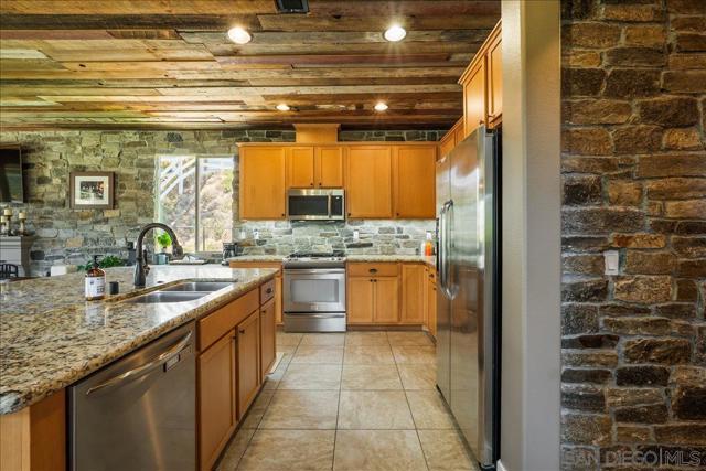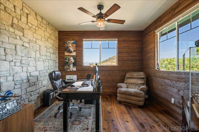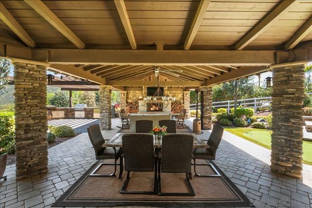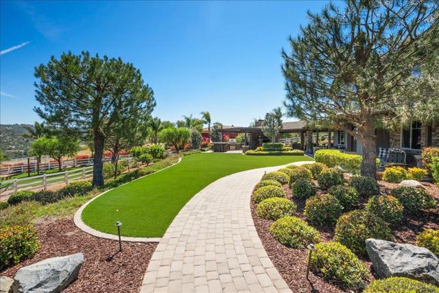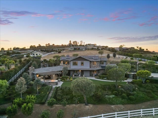 Experience the ultimate blend of rustic Craftsman elegance and 21st-century independence. Perched on over two acres with sweeping mountain and valley views, this one-of-a-kind estate—meticulously crafted by a master builder—offers exceptional comfort, security, and self-sufficiency. Thoughtfully upgraded for modern living and peak performance, the home features dual solar systems with approximately 27 panels working in tandem to deliver a rare revenue-neutral energy profile. Enjoy year-round comfort with central air conditioning, a newly installed whole-house fan designed to capture refreshing mountain breezes, and a tankless water heater for on-demand efficiency. A Generac whole-house backup system ensures uninterrupted power, while a fire sprinkler system adds peace of mind. Professionally installed artificial turf in both front and back yards provides a lush, low-maintenance landscape year-round. Inside, a dramatic 21-foot entry welcomes you into a warm, refined interior highlighted by natural stone, reclaimed barn wood ceilings, and European oak flooring. The open-concept main level showcases a chef’s kitchen with striking Rocky Mountain granite, a hidden butler’s pantry with wine storage, and a cozy living area anchored by a wood-burning fireplace. A convenient downstairs guest suite with a private ensuite bath is ideal for visitors or multi-generational living. Upstairs, the primary retreat features a private balcony with panoramic valley views, dual vanities, and a spa-inspired bath. Two additional bedrooms and a full bath offer flexibility for family, guests, or a home office. Custom Edison bulb fixtures and LED staircase accents add distinctive character throughout. Step outside to a resort-style setting designed for both relaxation and entertaining. The covered outdoor living area features ceiling fans, a 65" TV mounted above the fireplace, and a built-in beer tap—perfect for hosting. Additional features include an outdoor BBQ island and fire table with polished concrete countertops, a custom crane-placed boulder waterfall, a 4-hole putting green, a wood-burning fire pit, and a fully enclosed professional-grade dog run. Mature fruit trees—including grapefruit, orange, lime, and apple—enhance the property’s charm and provide a touch of orchard living. As the sun sets, the property transforms into a nighttime showcase, with professionally designed LED lighting illuminating the tree-lined entry and artisan stonework. The fully fenced grounds offer exceptional privacy, featuring a custom stone and paved entry with infrastructure in place for an automated gate. Additional amenities include a 3-car garage with epoxy flooring and custom cabinetry, a whole-house water purification system, and multi-zoned acreage suitable for recreation, privacy, or equestrian use. More than a home, The Ortega Road Lodge is a private sanctuary designed for those who value luxury, independence, and peace of mind.