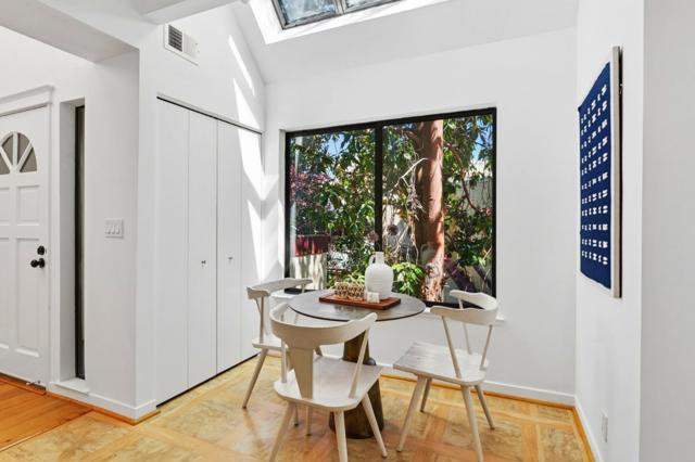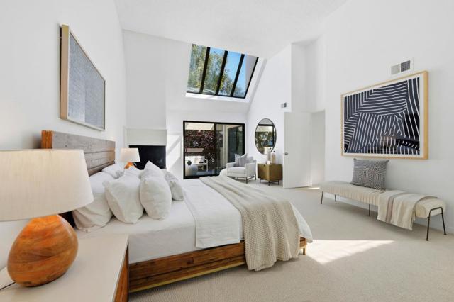 Experience nature and serenity as you step into this spacious, chic, top-floor, single-level, corner condo with views of green foliage and meandering waterways. Dramatic vaulted ceilings, skylights, and picture windows flood the home with natural light. The living room flows to one of two balconies overlooking the water and is great for entertaining or unwinding. The primary bedroom is oversized with soaring ceilings, wall-to-wall closets, and a secondary fireplace. Both bathrooms were just remodeled with brand new vanities, tile floors, sinks, faucets, and light fixtures. The kitchen features a breakfast nook and pantry and the dining area has a new chandelier. The walls have been freshly painted and new cozy Berber carpets were just installed. There is convenient side-by-side laundry in the hall. One assigned parking spot and storage closet are located in the shared, gated, garage just below the unit. The complex has a clubhouse and 2 swimming pools with jacuzzis for residents to enjoy along the water. Shorebird Circle in Redwood Shores is close to shopping, restaurants, daily essentials, bay front walking trails and cycling paths. Located in Silicon Valley, the Shores offers easy access to internationally recognized companies, major commuting routes, and highly ranked schools.