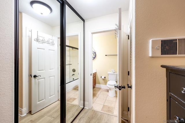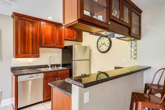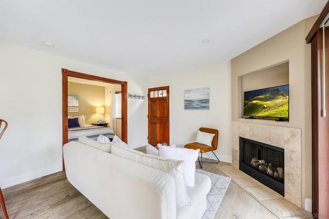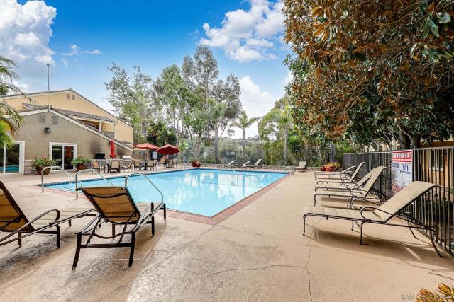 Beautifully maintained corner residence in the highly desirable La Jolla Village neighborhood, ideally situated next to a peaceful green belt and offering a perfect blend of comfort and convenience. This inviting home features a bright, open layout with warm wood cabinetry, granite countertops, and a functional breakfast bar that seamlessly connects the kitchen to the living space. The cozy living room is centered around a charming fireplace and opens to a private outdoor patio through sliding glass doors—ideal for relaxing or entertaining while enjoying lush, green surroundings. The patio also features a convenient closet with in-unit stackable washer and dryer, adding everyday ease and functionality. The bathroom is well-appointed with ample storage and a clean, classic design. Residents enjoy access to resort-style amenities including a sparkling pool, sun deck, and outdoor gathering areas surrounded by mature trees and tropical landscaping, creating a peaceful retreat-like setting. Ideally located near world-class beaches, shopping, dining, and easy freeway access, this home offers the best of coastal La Jolla living.