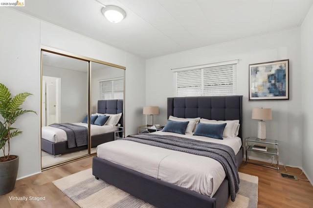 Beautiful 1976 ,move in ready home perfect for indoor and outdoor entertaining. Approx. 1440 sq.ft. Spacious Living Room, Family Room with porch access and Formal Dining Room. Breakfast Bar. Newer, beautifully appointed Chef's Kitchen. Both bedrooms have adjoining baths. Spacious covered porch and private patio. Newer laminate flooring and roof. Indoor Laundry. All appliances stay. Located just minutes from Downtown Morgan Hill, shopping and restaurants. Low Space Rent approx. 800 per month. No property tax. 2 pets allowed with park approval. Priced to sell at 289,900. Financing available for those who qualify. Most personal effects have been removed, and property has been virtually staged. Fireplaces: NO