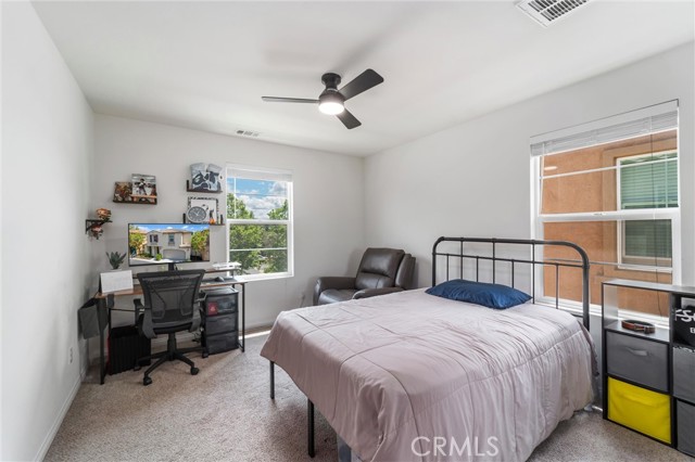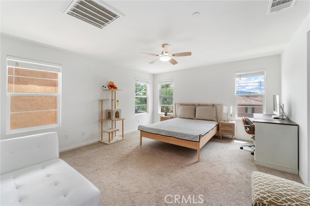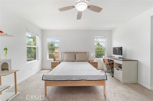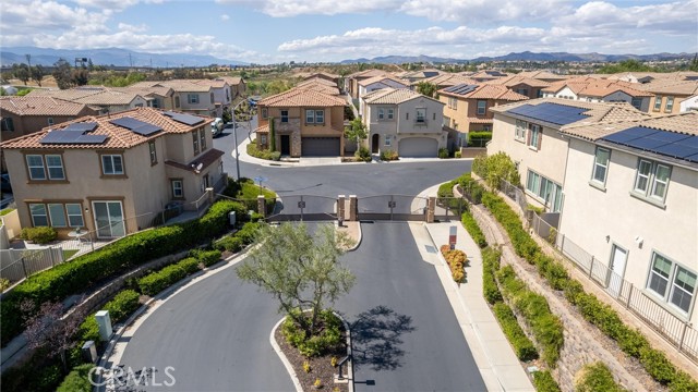 Welcome to this beautifully maintained single family detached home (no common walls) located in the quiet, gated Seneca community in Murrieta, offering low taxes and exceptional comfort. Boasting approximately 1,941 sq ft of living space, this home features 3 bedrooms, 2.5 bathrooms, and a spacious loft—perfect for a home office, media room, or flexible living space. The open concept main level showcases a bright living and dining area that flows seamlessly into a well appointed kitchen, complete with upgraded appliances, granite countertops, a pantry, and crisp white cabinetry. Upstairs, the primary suite offers a relaxing retreat with dual walk-in closets, double vanities, a separate shower, and a soaking tub. Two additional bedrooms feature mirrored closet doors and share a generously sized bathroom. A convenient upstairs laundry room with built-in storage cabinets adds to the home’s functionality. Enjoy outdoor living in the low maintenance backyard, featuring a private patio area ideal for entertaining, with no rear neighbors for added privacy. The attached two-car garage includes a 220V EV charger. This energy-efficient home is equipped with dual HVAC systems, a tankless water heater, and solar panels for enhanced comfort and savings. Ideally located within walking distance to Alta Vista Elementary School and just minutes from shopping, dining, and easy freeway access. A perfect blend of comfort, efficiency, and convenience—don’t miss this opportunity!