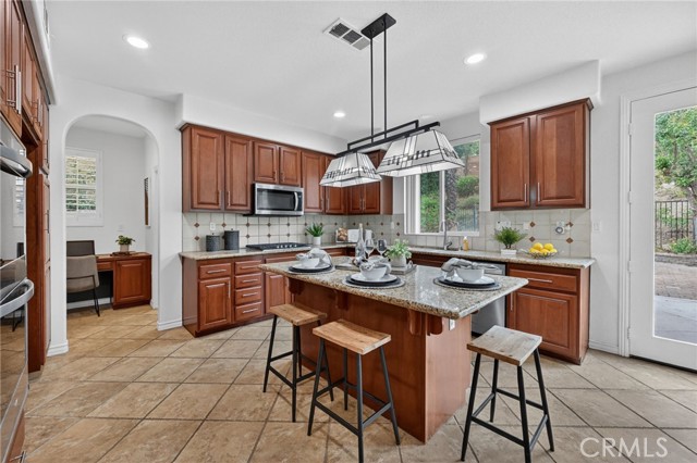 Welcome to one of Wildomar’s most inviting and thoughtfully designed homes—where space, privacy, and lifestyle come together seamlessly. Tucked away in a quiet neighborhood with no front or rear neighbors, this property offers a rare sense of openness and tranquility that’s hard to find. From the moment you enter, you’re greeted by a versatile layout designed for both everyday living and effortless entertaining. The formal dining area sets the stage for memorable gatherings, while the additional bonus room offers the flexibility for a home office, gym, or creative space. At the heart of the home, the kitchen flows naturally into the main living area, creating a warm and connected environment. A highly desirable mother-in-law suite with a full bathroom downstairs provides the perfect setup for guests, extended family, or multi-generational living. A convenient downstairs laundry room adds to the home’s thoughtful functionality. Upstairs, you’ll find spacious bedrooms along with an expansive loft that can easily transform into a media room, game room, or additional living space—whatever fits your lifestyle. The primary suite is a true retreat, complete with a large walk-in closet and plenty of room to unwind and recharge. Step outside to your private backyard oasis, designed for entertaining and relaxation. Enjoy a fully equipped outdoor kitchen, mature fruit trees, and peaceful surroundings with no rear neighbors—perfect for hosting or simply enjoying quiet evenings at home. WiFi-controlled sprinkler timers add modern convenience and effortless maintenance. Ideally located just minutes from the 15 and 215 freeways, and close to shopping, dining, and everyday essentials, this home offers the perfect balance of privacy and accessibility. Homes with this combination of space, layout, and privacy rarely come available—don’t miss your opportunity to experience it in person.