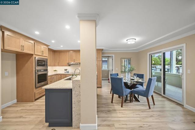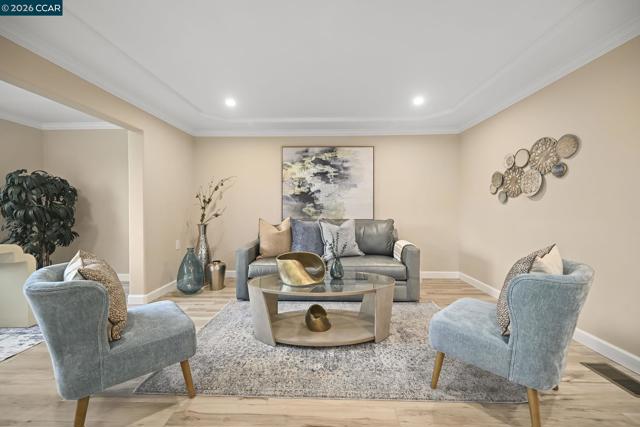 Don't miss this one of a kind Toupin Construction remodeled Sonoma Wrap model. Spacious 2 bedroom, 2 bathroom with added den/study with lots of sunshine. Open living area with spacious kitchen and dining area. Convenient separate laundry room with walk-in closet. The primary bedroom suite features an ensuite bath with a stylish sliding barn door. Both bedrooms offer generous closet space with mirrored doors and custom shelving. Beautiful luxury plank vinyl flooring runs throughout the home. Carport has added custom storage cabinets. Enjoy easy access to Rossmoor’s exceptional amenities, including golf, the Event Center, Dollar Pool, dining, and a wide variety of activities—all just a short walk away.