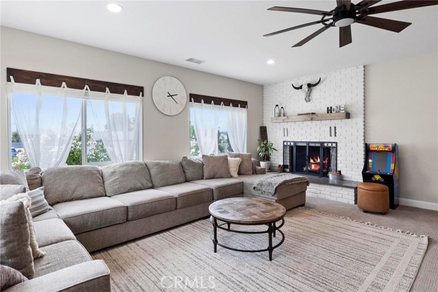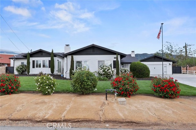 **RARE MODERN FARMHOUSE ON ALMOST AN ACRE WITH 3,000 SQ. FT. SHOP, RV ACCESS & HIGH-END UPGRADES** Welcome to 13461 Fremont St., an exceptional modern farmhouse estate set on nearly an acre of flat, usable land in one of Yucaipa’s most desirable settings. Offering approximately 2,500 sq. ft. of thoughtfully designed living space, this single-story residence seamlessly blends timeless design with elevated modern finishes. The interior is both sophisticated and inviting, featuring four spacious bedrooms and three beautifully appointed bathrooms. A grand living room with a fireplace creates a warm yet elegant atmosphere, while a separate dining space with its own fireplace flows effortlessly into the heart of the home. A well-appointed indoor laundry room adds everyday convenience. The designer kitchen is curated for both style and function, showcasing white shaker cabinetry, striking black hardware, stainless steel appliances, an oversized industrial-style gas range, farmhouse sink, and a large center island with contrasting tones. Pendant lighting, recessed lighting, and a walk-in pantry complete this impressive space. The primary suite offers a private retreat with a generous walk-in closet and a spa-inspired bathroom featuring dual vanities and a walk-in shower with custom tile accents. Throughout the home, you’ll find designer lighting, a blend of laminate wood flooring and plush carpeting, and a light, airy color palette. Step outside to enjoy a sprawling covered patio with ceiling fans overlooking a manicured lawn enclosed by vinyl fencing. A detached two-car garage adds convenience, while the expansive grounds provide both privacy and versatility. A standout feature is the approximately 3,000 sq. ft. workshop/RV garage with two RV bays and an insulated office suite, mini-split system, bathroom, wet bar, vinyl flooring, and recessed lighting—ideal for a workspace, studio, guest space, or ultimate retreat. The property also includes a cement RV pad alongside the shop, extended concrete areas, and an additional 40-ft shipping container for extra storage. Additional highlights include two powered gates for secure access, dual driveways with extra-wide entry, rain gutters, and a Radiant Life Series 6 whole-house water filtration system. A rare offering where luxury meets versatility—this is more than a home, it’s a lifestyle.