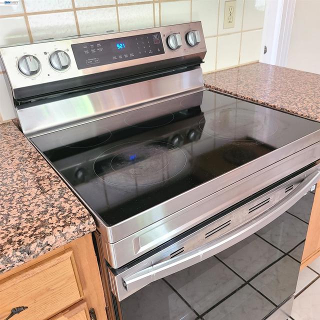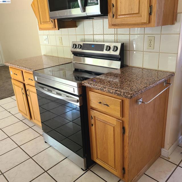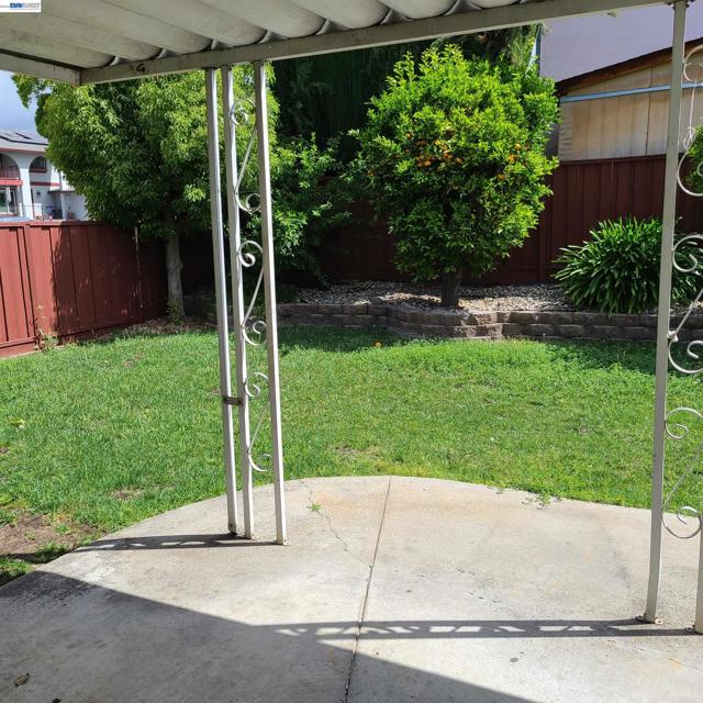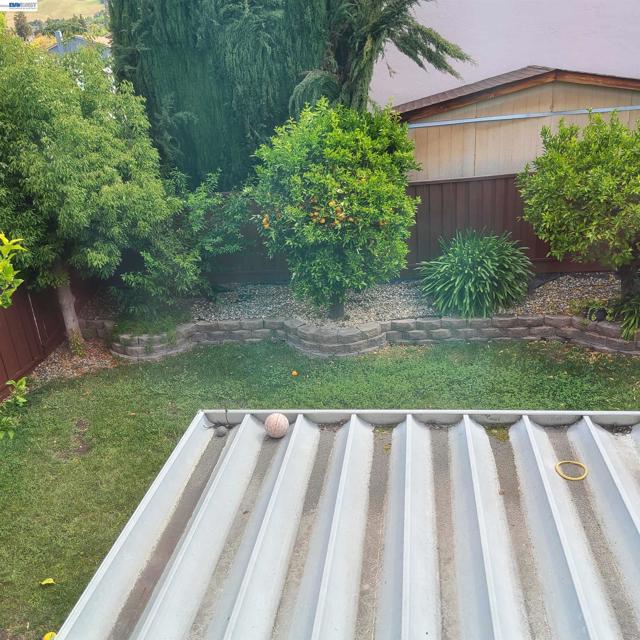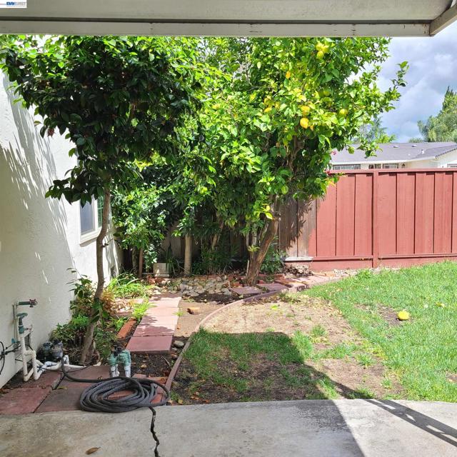 Corner lot , possible side yard access along San Saba. Fruit trees in backyard, covered metal awning gives way to a relaxing backyard. Solid surface floors in Living room with room for formal dining. Granite kitchen counter tops , free standing electric stove and oven. Needs newer carpet up staircase and in family room.