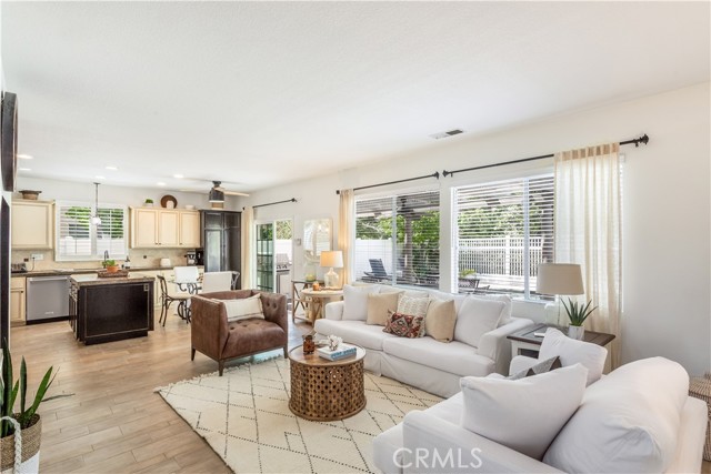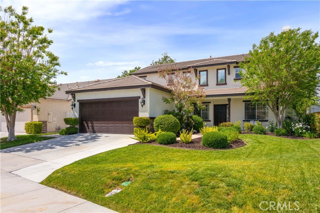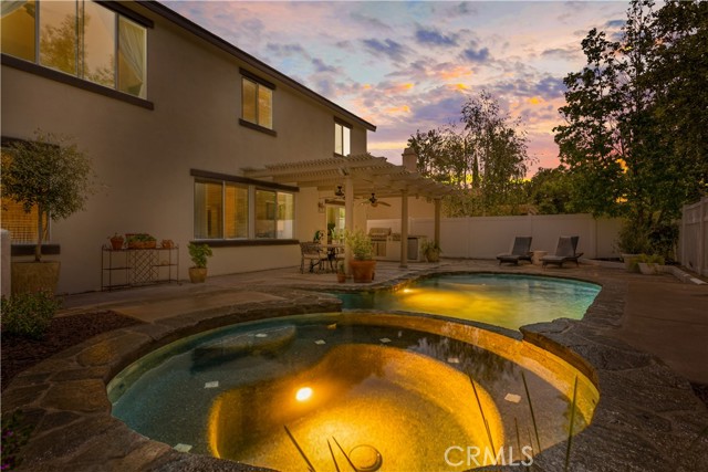 PASEO DEL SOL CHARMER! Pool/Spa home at the end of a Cul de Sac, plus this home backs to the Paseo Del Sol walking trails. 2451 sq. ft with 4 Bedrooms (all upstairs) 2.5 Baths, a Main level Office & a Main level Bonus Room. Well maintained mature landscaping all throughout the property. Covered front porch entry. Open floorplan and light & bright throughout. Formal Living and Dining rooms at the front of the house. Cozy, gas fireplace in the living rm. Family room/kitchen combo + office span the back of the home w/ views of the lush & peaceful surroundings in the backyard. The kitchen has a center island for added workspace, stainless steel appliances & granite tile countertops. The main level Bonus Rm was added, through the builder, and is currently used as a media room, but could easily be another home office or a play room. Upstairs are the 4 bedrooms, including the Primary Suite. The primary suite has high ceilings, dual closets + dual sinks & separate tub/shower in the bathroom. The backyard and pool have just been updated & improved. No direct neighbors behind, just lush green landscaping from the Paseo walking trail. Entertainers backyard with a sparkling Pool/Spa, built in BBQ island & shaded Dining Space. Paseo del Sol community offers many amenities: 3 pools, Tennis, Fitness, Parks, Community Activities and Miles of Walking Trails. Low Taxes due to no Mello Roos in this community. Walking distance to Elementary & Middle Schools. Overall Great Location in South Temecula, close to shopping, medical, restaurants & all the Temecula Wineries. Come see this home ASAP