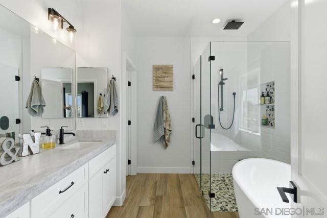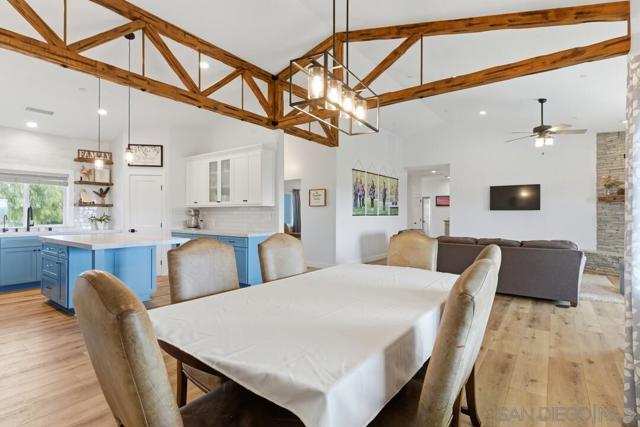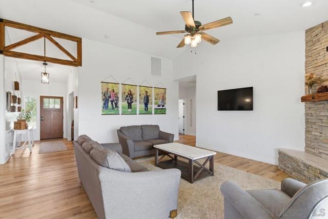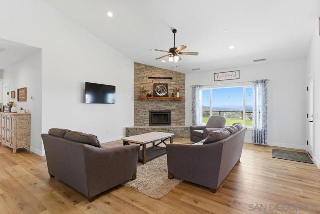 Built by highly regarded local builder Freeman’s Construction Inc., this beautifully crafted single-level Ramona home offers 3 bedrooms, 2 bathrooms, plus an office/flex room with potential for a 4th bedroom, 2,226 sq ft of living space, an oversized 953 sq ft 3-car garage, and 3.25 private acres with panoramic valley views, all less than 10 minutes from town. The home features soaring ceilings, exposed wood trusses, expansive windows, a large island kitchen, and a striking stone fireplace with a premium Fireplace Xtrordinair unit designed to heat the home. The master suite includes radiant heated bathroom floors, dual vanities, a freestanding soaking tub, and a barrier-free shower. Outside, enjoy mature pine and pepper trees, unobstructed sunrise and sunset views, a covered patio, fully fenced rear lawn, 60x90 fenced pet yard, and 12x30 chicken coop with run. Additional highlights include energy-efficient construction, spray foam insulation, low utility bills, private well with new pump and whole-house filtration, Generac propane backup generator, and 400-amp service with underground utilities already installed for future shop or ADU potential. Utilities are run approx. 60 ft to the south for one future shop/ADU location, plus a second private ADU pad location to the north set well away from the main house. Built by Freeman’s Construction Inc., a respected and well-known Ramona builder, this beautifully designed single-level home offers the kind of quality, setting, and long-term functionality buyers are always hoping to find but rarely do. Set on 3.25 private acres with panoramic Ramona Valley views, the property combines peaceful country living, thoughtful construction, and practical infrastructure in a location less than 10 minutes from town. From the moment you arrive, the home makes a strong impression. The setting feels quiet, private, and scenic, with mature pine and pepper trees, open skies, and expansive east-to-west views that deliver both stunning sunrises and sunsets. The land is highly usable and has been cleared of brush throughout the full 3.25 acres, enhancing both function and presentation while complementing the home’s wildfire-conscious construction features. Inside, the home offers approximately 2,226 square feet with 3 bedrooms, 2 bathrooms, plus an office/flex space that could serve as a 4th bedroom, along with an oversized 953 square foot 3-car garage. The architecture and layout are a major part of the appeal. Exposed wood trusses, soaring ceilings, and expansive windows create a bright and open feel, while the spacious main living area is centered around a striking stone fireplace with a premium Fireplace Xtrordinair unit designed to heat the home while also delivering warmth, ambiance, and visual impact. The kitchen is equally impressive, with a large center island, generous cabinetry, ample prep space, and an easy flow into the dining and living areas that works beautifully for everyday living and entertaining. The primary suite continues that same thoughtful approach, offering a bathroom with radiant heated floors, dual vanities, a freestanding soaking tub, and a barrier-free shower. These details help the home stand out by combining comfort, quality, and livability in a way buyers can immediately appreciate. The outdoor spaces add even more to the property’s value and versatility. A covered patio opens to a fully fenced rear lawn, creating an inviting area for relaxing, entertaining, or simply enjoying the quiet setting. There is also a separate 60x90 fenced pet yard and a 12x30 chicken coop with run, giving the property flexibility for animals, hobbies, and a more self-sufficient lifestyle. Beyond the visual appeal, this home offers meaningful infrastructure and efficiency advantages. Features include energy-efficient construction, spray foam insulation, low utility bills, a private well with a new pump, whole-house filtration, and a Generac diesel backup generator for added peace of min...
