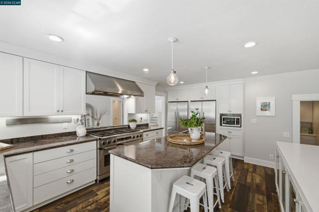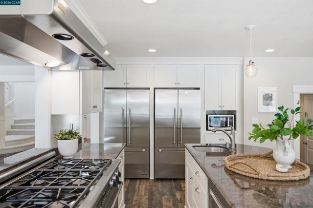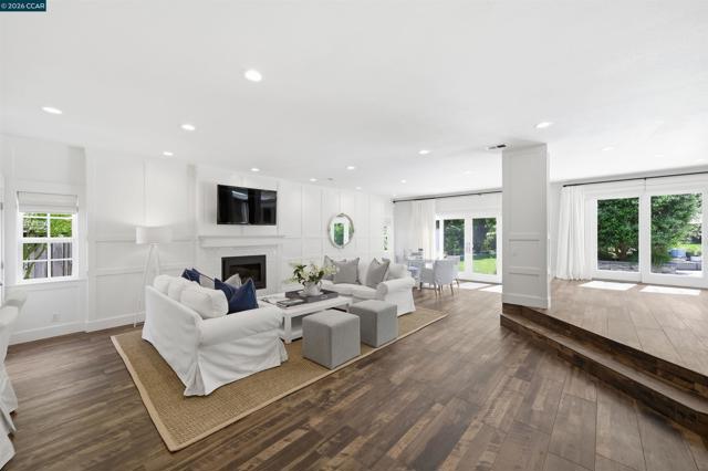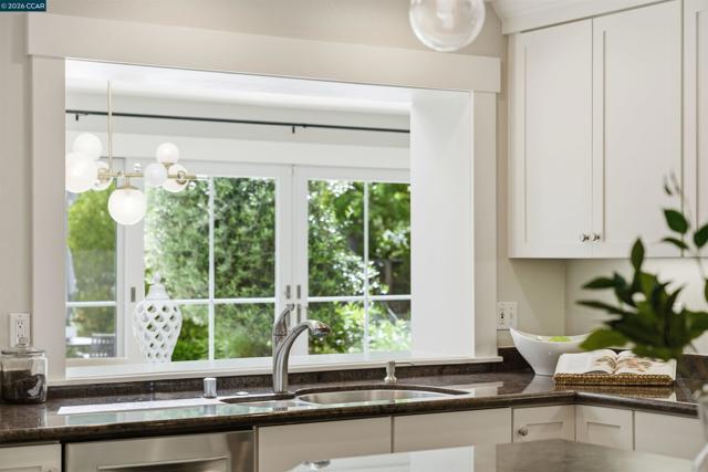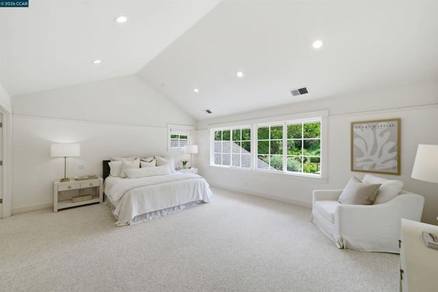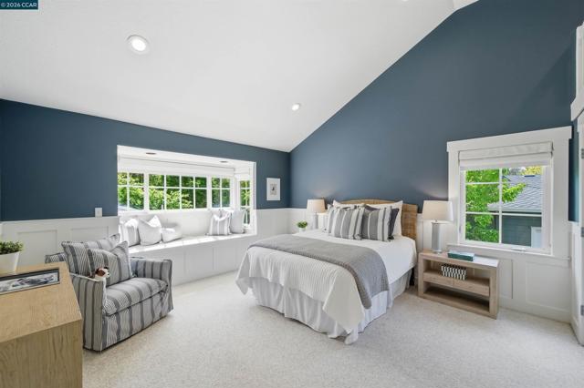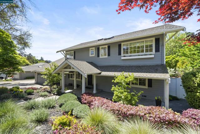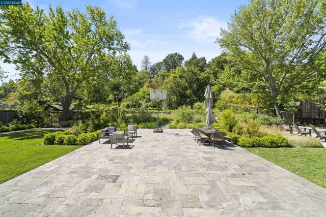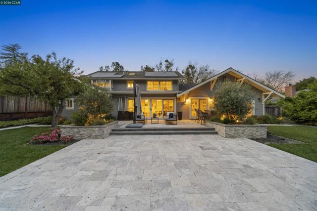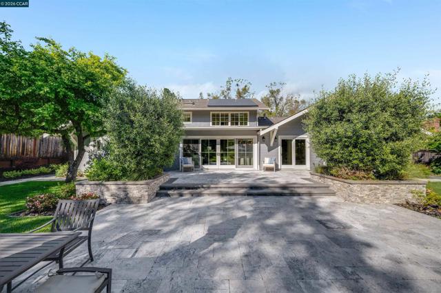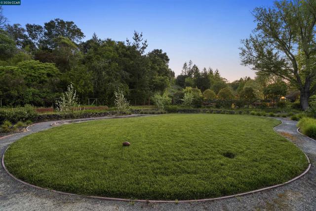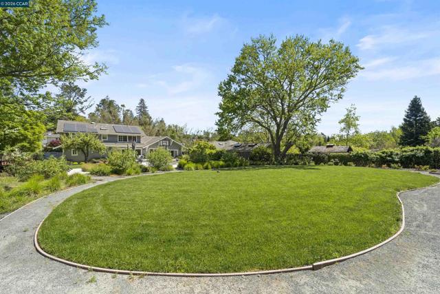 Rarely does a home like this come to market in Orinda. From the moment you arrive, the elegant traditional covered entry, impeccably landscaped front garden, and mature Japanese maples set the tone for everything that follows. Step inside to a home reimagined from top to bottom with a sophisticated designer palette; crisp white wainscoting, warm wide-plank floors, skylights, and walls of glass that dissolve the line between indoors and out. The main level is an entertainer's dream: a cozy parlor with fireplace and built-in cabinetry, an expansive open-plan family room with skylight and sliding doors to the patio, a beautifully appointed dining room, and a gourmet kitchen with stainless appliances, island, bar seating, and butler's pantry. Two generous bedrooms on this level; one a serene en-suite complete the main floor. Upstairs, the primary suite impresses with soaring vaulted ceilings, lush garden views, walk-in closet, and attached office. Two additional bedrooms with vaulted ceilings and a well-appointed hall bath complete the upper level. Outside is where 246 Overhill truly sets itself apart. The .69-acre flat lot, vanishingly rare in Orinda, has been transformed into a resort-caliber retreat: a grand stone patio with built-in fire pit, a separate dining terrace, sweeping oval lawn, raised garden beds, abundant fruit trees, mature ornamental plantings, and a basketball hoop. Solar panels add modern efficiency, and the property is pre-plumbed for a pool, cabana, or ADU. Moments to Glorietta Elementary, Meadow Swim & Tennis Club, the Lafayette Rim Trail, and both Orinda and Lafayette town centers. Welcome home!