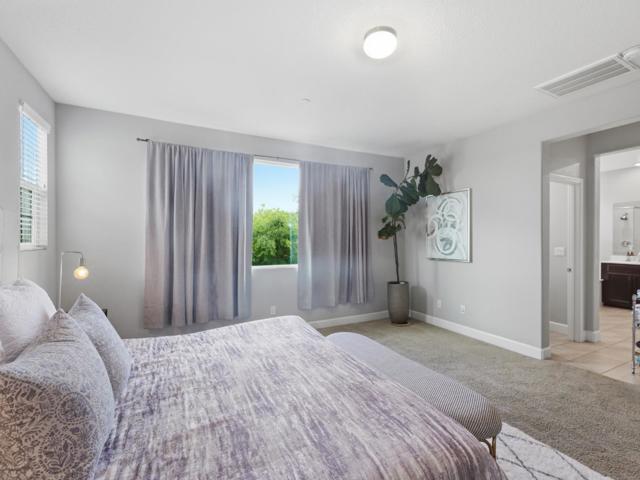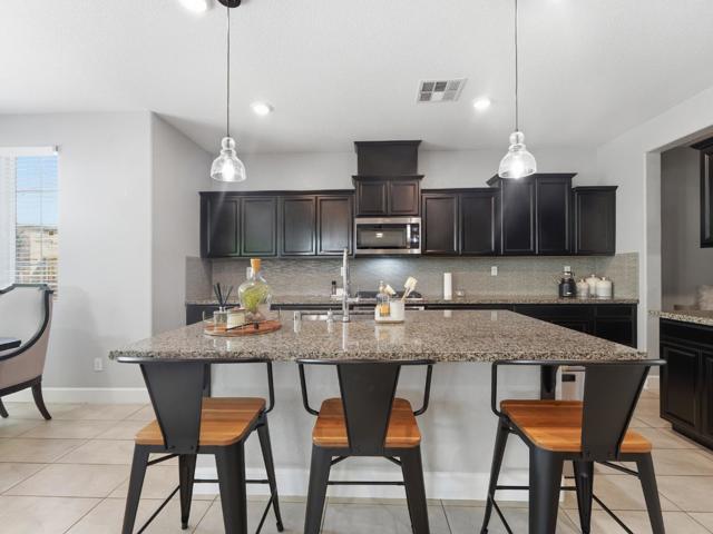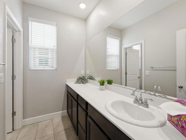 Located in Mountain House, this 4-bedroom, 3-bath home offers 2800 sq. ft. of living space on a 5,096 sq. ft. lot. The kitchen features a 220-volt outlet and opens to a family room with a fireplace. Stone flooring runs throughout the main areas, complementing the granite bathroom surfaces. The family and dining areas are combined for a spacious feel, with central air conditioning and heating zones providing comfort year-round. Laundry includes washer and dryer hookups. Additional highlights include double pane windows, a 2-car garage, and a walk-in closet. This beautiful house includes sellers upgrades. Loft offers bright open space that can be used as gaming room or office. The property is part of the Lammersville Joint Unified School District.