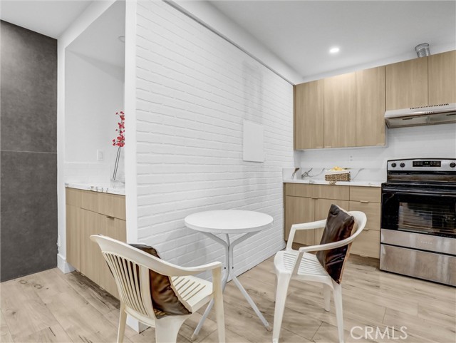 Newly renovated 1 bedroom 1 bath single story condo within walking distance to the UCLA campus. Brand new renovations include: 0.3mm PVC flooring, kitchen cabinets and appliances, ceiling recess lightings, water-saving shower unit with glass door, water-saving toilet and vanity unit with lighted mirror, and central HVAC unit. 1 parking assigned space in gated subterrain parking lot. West facing walk-out patio thru sliding doors for outdoor activities. 10 mins walking distance to UCLA campus and Westwood Village, minutes driving to access of FWY 10/405 and nearby beach cities. Great for single and double occupancies.