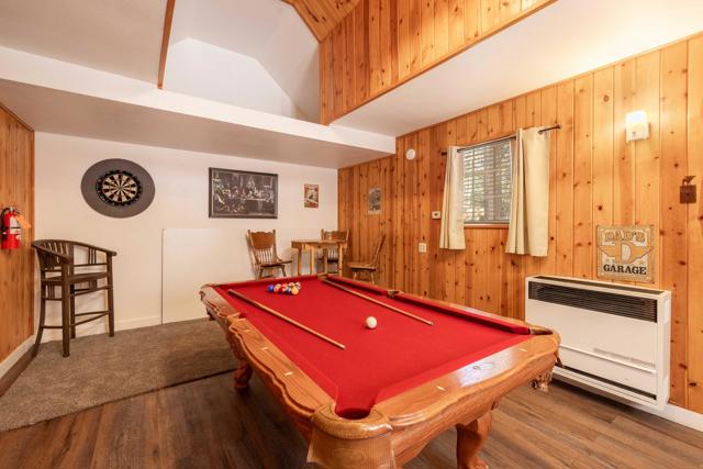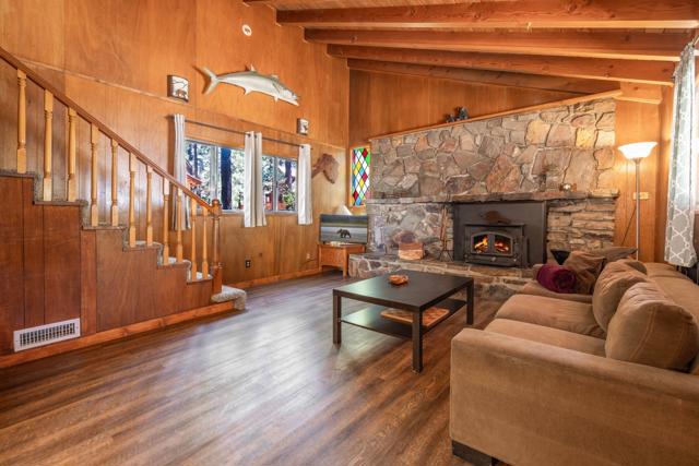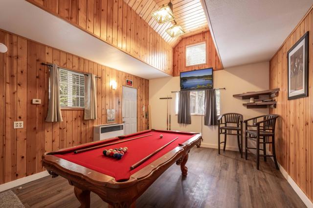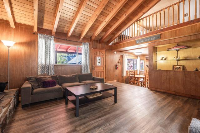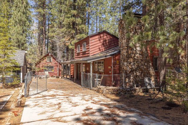 You'll love the alpine ambiance this authentic mountain cabin delivers. Vaulted wood-beamed ceilings with gorgeous native-rock fireplace in the living area. Spacious loft bedroom with half-bath upstairs. Additional bedroom and full bath downstairs. Covered front porch, metal roof, fenced lot with great parking, central heat, laundry, dual pane windows AND a detached game room! Which could easily be converted into an office, studio or additional sleeping area if preferred. Excellent location, close to great hiking, Boulder Bay Park, the lake and all the year-round fun that Big Bear offers.