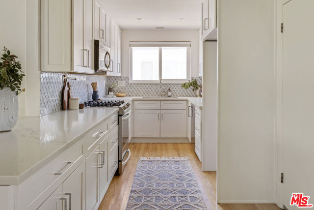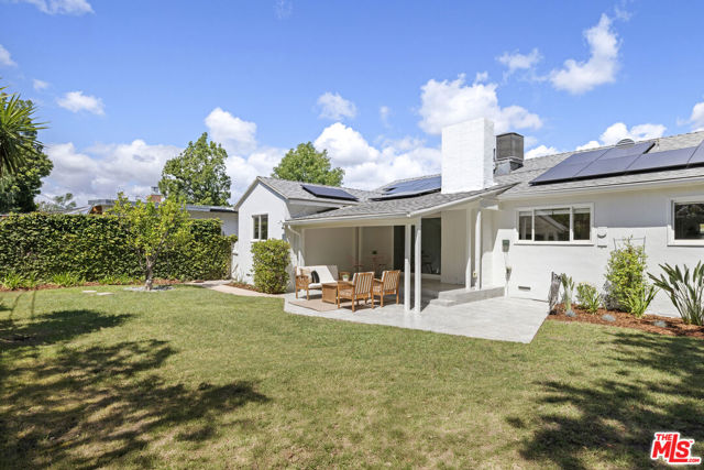 Located in the sought-after Encino Village neighborhood, this stunning three-bedroom, two-bathroom home greets you with a freshly painted exterior and beautifully kept landscaping. The main living space showcases wood floors and a decorative fireplace. An abundance of natural light and views of the backyard make this a place you'll love coming home to. The bright kitchen features quartz countertops, stainless steel appliances, and an oversized peninsula with a breakfast bar. Just off the living room, the cozy and elegant dining area is the perfect place to entertain. The primary bedroom offers two closets and an en suite bathroom with dual sinks. On the opposite side of the home, two additional bedrooms share a well-appointed hall bathroom. Outside, the backyard immediately draws you in with ivy-draped walls, a large covered patio, and plenty of lush green space. The attached two-car garage houses the washer, dryer, and a newly installed tankless water heater. Newer solar, updated plumbing, ample storage, and a freshly painted interior and exterior make this the most effortless choice. The location truly is a dream, with tree-lined streets and easy access to Balboa Park, the Balboa Sports Complex, Ventura Blvd, fantastic restaurants, major freeways, and within the Encino Charter Elementary School District. This home is a true hidden gem in the heart of the Valley.