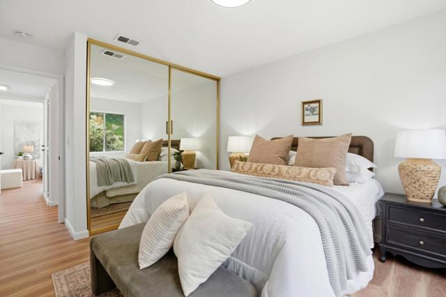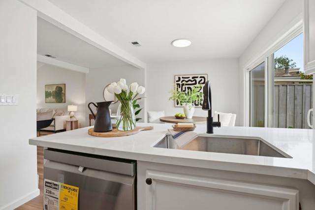 This 2-bedroom, 1.5-baths home is located in Pacifica and offers approximately 1,150 square feet of living space. The kitchen features new quartz countertops, an electric oven range, a dishwasher, garbage disposal, hood over range, and a refrigerator, providing a functional cooking area. Flooring throughout includes carpet and laminate, complemented by double pane windows for added energy efficiency. The bathroom includes a tile shower over tub and a half bath on the ground floor. Heating is provided by central forced air gas, and there is no cooling system. Dining options include a breakfast bar and a dining area. Laundry is conveniently located in the utility room with washer and dryer and loads of storage. The property is part of the Pacifica elementary school district. While there is no garage or family room, the home benefits from high ceilings and access to community pool facilities. Minutes to shops, ocean, beach and San Pedro Park.