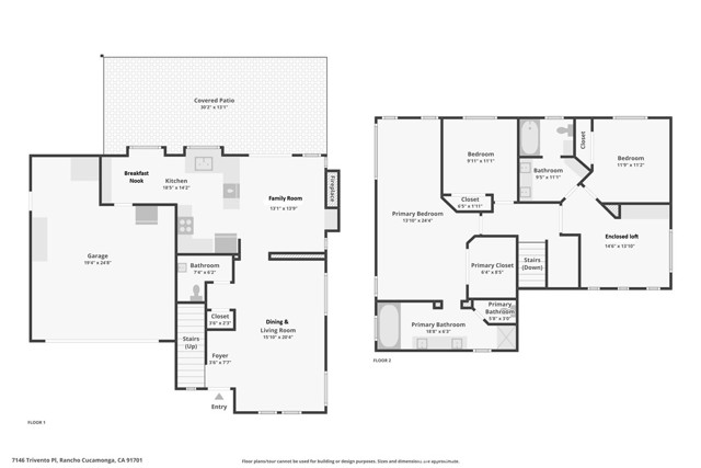 Centrally located in a desirable neighborhood with excellent schools, this well-appointed home offers comfort, space, and convenience—featuring no HOA and low taxes with easy access to the 210, 15, and 10 freeways. Inside, you’ll find wood flooring, vaulted ceilings, and abundant natural light throughout. The formal living and dining rooms welcome you off the foyer, while the open-concept family room and kitchen create an ideal space for everyday living. The kitchen includes a breakfast nook and flows seamlessly into the family room, complete with a cozy fireplace and sliding glass door to the backyard. Go outside to a covered patio overlooking a lush yard with green grass and a planter border filled with mature landscaping—perfect for relaxing or entertaining. Upstairs, the spacious primary suite features a versatile retreat area ideal for a lounge or home office, along with an en-suite bathroom offering dual sinks, a soaking tub, and a separate shower. Two additional bedrooms share a full bathroom, and a semi-enclosed loft provides flexible space that could easily serve as a 4th bedroom, office, or media room. Additional highlights include a main-level powder room and direct access to the attached 2-car garage. Come see all this home has to offer!