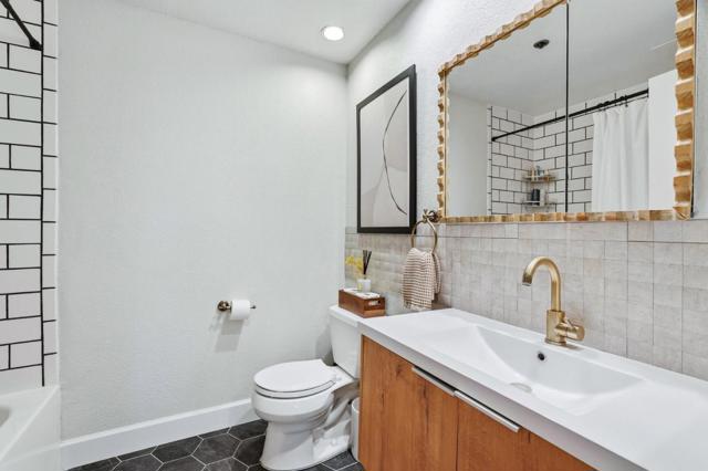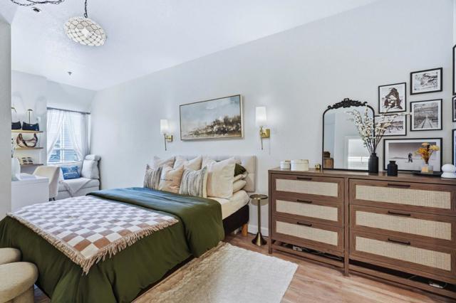This beautifully updated home features a modern kitchen with newly installed floor tiles and countertops, along with renovated bathroom floor tiles and vanities , all professionally done within the last two years. Enjoy the convenience of an assigned garage parking spot right near the elevator and garage door, plus private street parking (just register your vehicle with the city) and additional parking in adjacent lots. Located within walking distance to SAP Center and San Pedro Square, and just across the street from a dog park, this home offers an ideal location for work, play, and relaxation. With easy access to Highways 280 and 87, as well as Caltrain and VTA stations, commuting is a breeze. The south-facing windows provide an abundance of natural light all day long, and the direct street access to your front door eliminates the hassle of elevators or access keys. Additional amenities include secure locked mailboxes and parcel lockers, a gym room, event space, central AC and heating, a newer stainless steel sink, oven, and fresh paint throughout.