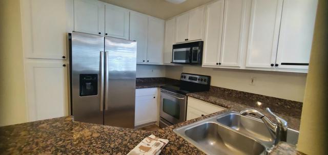 This ground-level condo boasts 2 bedrooms, 2 bathrooms, and a flowing open floor plan. Recently updated, it features a newer HVAC system, stylish vinyl plank flooring, modern kitchen cabinets, refreshed bathroom vanities, and a fresh coat of paint throughout. It's move-in ready and definitely worth a look! The HOA amenities boast pools/spas, tennis courts, a fitness center, BBQ areas, and walking paths.
