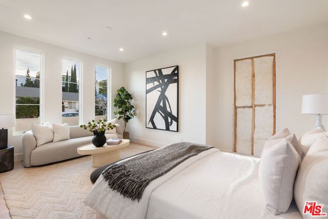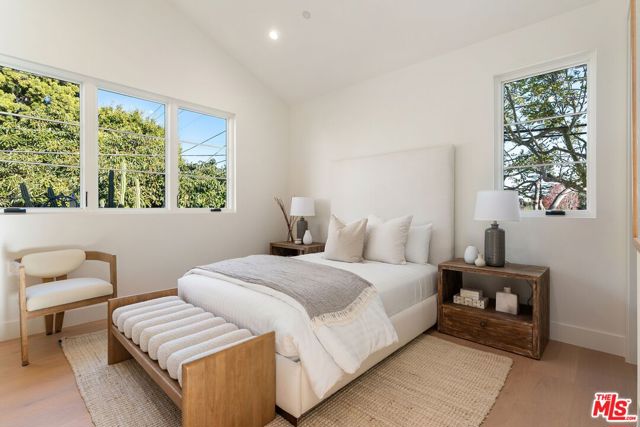 Newly built contemporary style home by Smart Builders, known for custom design work and attention to detail. Located on a lovely Mar Vista cul de sac street, the stone front greets you with warmth and elegance. Walking through the front door, your attention is directed to the high ceilings, open floor plan and a wall of glass opening to a wonderful grassy backyard. The gourmet kitchen with hand selected honed marble slab counters, an abundance of white oak cabinetry and thermador appliances opens seamlessly to the great room with fireplace and warm finishes, exactly as you have on your wish list. The downstairs secondary primary suite is not just a bedroom or office option, it's big enough to be both. There are a total of 5 bedrooms, 4.5 baths, including the powder room and downstairs suite. The upstairs primary suite is perfect with a walk-in closet and a bathroom with freestanding tub and beautifully appointed wide-plank engineered white oak floors throughout. Clearly this thoughtfully crafted estate speaks for itself every step of the way. Enjoy the convenience of being near Mar Vista's Farmers' Market and local restaurants.