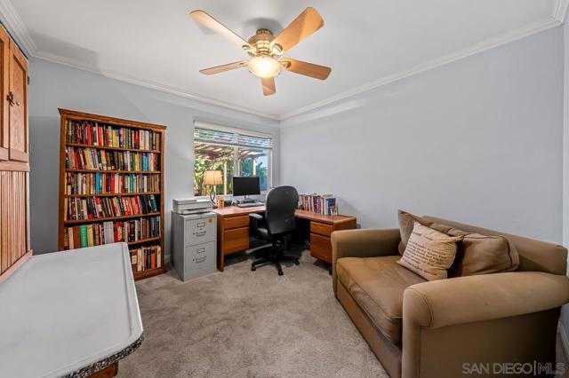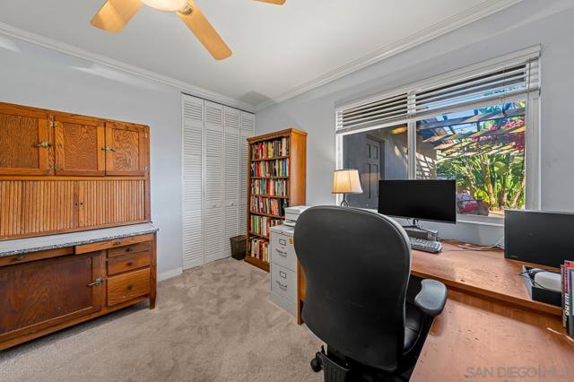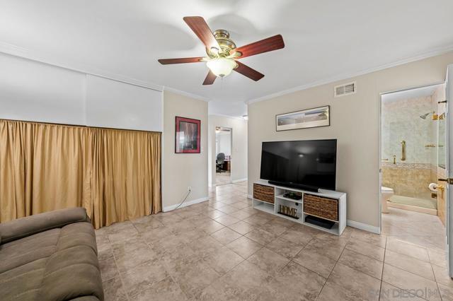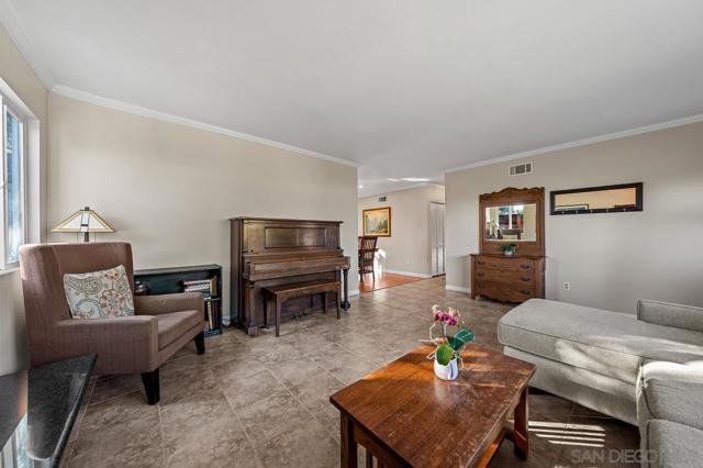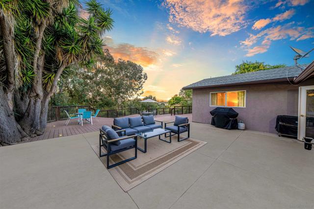 If you’re drawn to a park-like setting with sweeping, panoramic views to begin your mornings or unwind at sunset, your search ends here. Perfectly positioned adjacent to University Village Park, this single-level residence offers three bedrooms and three full baths, thoughtfully updated and meticulously maintained. The rear-facing kitchen is both functional and refined, featuring generous counter space, abundant cabinetry, a substantial island, and a casual dining area. The living room is warm and inviting, with soft neutral tones, abundant natural light, and a fireplace that anchors the space beautifully. The true centerpiece, however, is the expansive, multi-tiered deck—offering approximately 2,200 square feet of outdoor living. Designed for both relaxation and entertaining, it’s an exceptional extension of the home, where you can fully embrace San Diego’s year-round climate and serene surroundings.