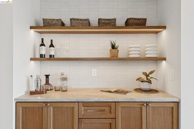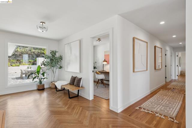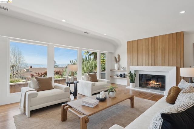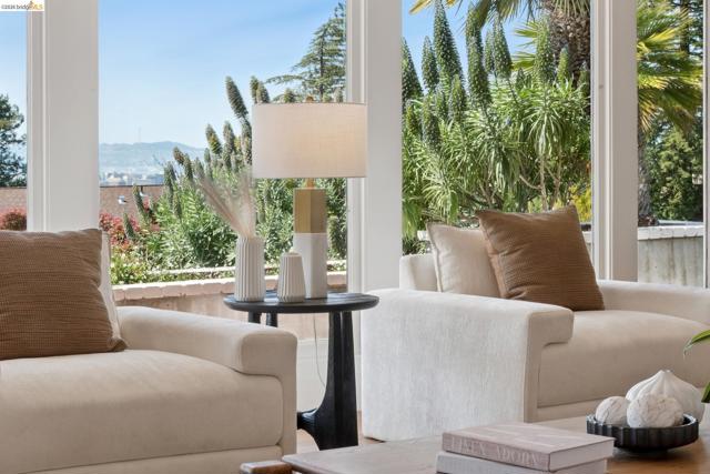 This exceptional home just feels good! Luxurious and welcoming, it engenders a sense of comfort and well-being – exactly what you want in a home. The spacious living & dining rooms feature beautiful bay views, while the gorgeous kitchen and cozy family room connect wonderfully with the level backyard. It is a home designed for everyday ease and enjoyment, while also providing a perfect setting for both formal and informal entertaining. The dramatic foyer, with herringbone floors and a large picture window to the backyard, divides the main living spaces from the bedroom wing. At the end of the hall you'l find the primary suite – a true retreat with ample room for restorative relaxation, along w/ two closets & a spa-like en-suite bath. Two more bedrooms, an attractive hall bath, and generously-sized laundry room round out this portion of the home. A dedicated office overlooks the yard and offers a space set apart from the main living areas. The patio and backyard beckon, featuring an outdoor kitchen & bar, and space for outdoor dining or gathering around the outdoor gas fireplace. The gated driveway leads to a two-car garage as well as a large basement available as a workshop, storage space, or wine cellar. Back inside, you'll find a guest bedroom tucked behind the kitchen, which can of course serve myriad other uses. Located in a lovely neighborhood with serene appeal while also offering close proximity to Montclair Village shops, parks & library, excellent public & private schools, Transbay Express routes, and convenient highway access. Also nearby are Glenview, Rockridge, and Elmwood amenities, Claremont Hotel & Resort, Claremont Country Club, and so much more. All told, this home truly presents an extraordinary opportunity. Please accept our invitation to come experience it for yourself!