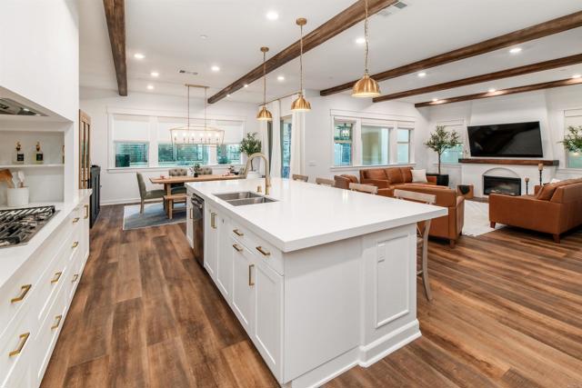 Magazine-Worthy Living Meets Multi-Gen Flexibility in Gated Mission Circle! Step into a home that feels straight out of a design magazine—where every inch has been thoughtfully designed and every detail intentionally elevated. Located in the gated Parkside at Mission Circle community, this stunning residence blends modern sophistication with warm, coastal Mediterranean-inspired style. From the moment you enter, you’ll notice the layered textures, custom finishes, and beautifully curated “moment spaces” throughout—perfect for morning coffee, quiet reading, or evening cocktails. The expansive kitchen is both functional and striking, featuring quartz countertops, a walk-in pantry, designer touches, and a statement stove surround that anchors the space while overlooking a custom-built fireplace and mantle. Decorative ceiling beams add warmth and architectural interest, creating a seamless flow for everyday living and entertaining. One of the home’s most exceptional features is the private Next Gen suite—a fully self-contained one-bedroom apartment complete with its own entrance, living room, full bathroom, kitchenette (with refrigerator, sink, and microwave), and separate laundry hookups. Ideal for multigenerational living, long-term guests, older children, or potential rental income, this space offers flexibility that is incredibly rare. Upstairs, the primary suite is a true retreat—offering dual oversized walk-in closets and a spa-inspired bathroom designed for both beauty and relaxation. Enjoy a deep soaking tub, separate shower, and a serene, light-filled atmosphere that feels more like a luxury hotel than a typical home. A spacious upstairs bonus area provides the perfect flex space for a media room, game room, office, or additional lounge—adapting effortlessly to your lifestyle. The large upstairs laundry room adds everyday convenience exactly where you need it. Step outside to a beautifully designed backyard retreat featuring a covered California room, thoughtfully curated landscaping, and mature olive trees that bring both privacy and charm. Whether hosting gatherings or enjoying a quiet evening outdoors, this space offers a peaceful, elevated setting. Even the smallest details have been considered—from a custom under-stair closet to intentional design elements throughout—making this home truly one of a kind. Additional highlights include paid solar with a partial home backup battery under NEM 2.0, offering enhanced energy efficiency, lower utility costs, and added peace of mind during outages. Beyond the home itself, the community offers a true neighborhood feel—where neighbors connect, kids play, and traditions like food truck Fridays, holiday bike parades, and festive Halloween celebrations bring everyone together.