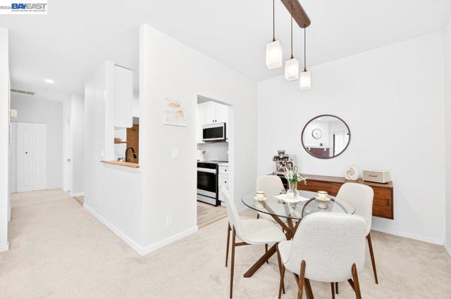Welcome to this exquisitely upgraded top-floor 2-bedroom, 2-bathroom residence, ideally situated in the heart of the Bay Area. Thoughtfully redesigned with modern sophistication, this home showcases a beautifully remodeled kitchen and bathrooms, complemented by elegant recessed lighting throughout. An in-unit washer and dryer add effortless convenience to everyday living. Perched on the top floor, the home is filled with abundant natural light, creating a bright and airy ambiance. The refined living room features a cozy fireplace and seamless access to a private balcony overlooking serene garden views—an ideal setting for morning coffee or evening relaxation. Both bedrooms are generously sized, with the primary suite offering expansive closet space for enhanced comfort. Residents enjoy a well-maintained community with desirable amenities, including a fitness center, swimming pool, clubhouse, and water service included in the HOA. Additional highlights include two assigned parking spaces and convenient elevator access. Located within a secure gated community, the home offers easy access to major freeways and Silicon Valley. Enjoy close proximity to Ranch 99, Lion Market, Costco, and a wide variety of popular dining options. Experience a perfect blend of comfort, style, and convenience in this exceptional home.