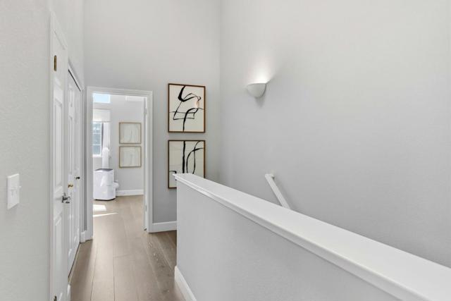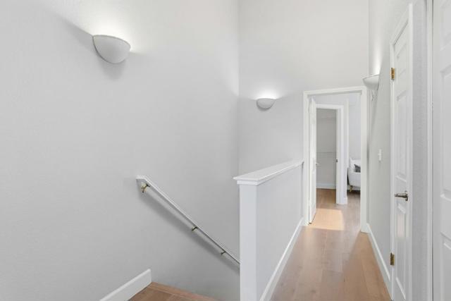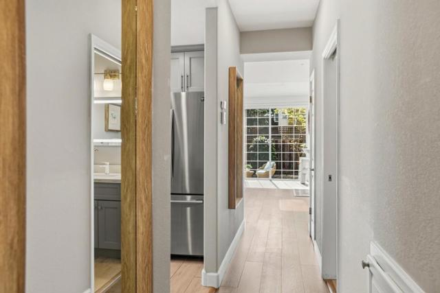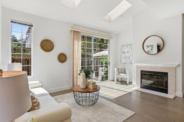 This two-story Palo Alto townhouse features 1,375 square feet of living space on a 1,176-square-foot lot, including two bedrooms and two and a half bathrooms. Quality interior details include hardwood flooring, high vaulted ceilings, and skylights that provide abundant natural light throughout the home. The open floor plan centers on a living room with a fireplace and provides direct access to a private fenced backyard. Notable amenities include an in-unit laundry area, an attached one-car garage, and additional guest parking. Residents also have access to a community swimming pool and well-maintained landscaped grounds. Located in a prime Silicon Valley position, this home offers a convenient commute to Stanford University and major technology campuses via Highways 101 and 280. The property is situated near downtown Palo Alto and Los Altos, and it benefits from the local school district including Juana Briones Elementary, Fletcher Middle, and Gunn High School.