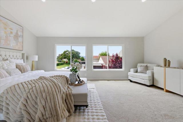 This rare residence is beautifully positioned to capture panoramic bay views, where stunning sunrises create a serene and inspiring backdrop every day. The home features an airy high-ceiling design that enhances the sense of space and light throughout the living areas. The expansive master bedroom offers a private retreat with generous proportions and a peaceful atmosphere, perfectly complementing the homes thoughtful layout. With four well-designed bedrooms, the floor plan provides exceptional flexibility for guests, a home office, or multigenerational living. There is also a downstairs office that can be easily converted into a fifth bedroom if needed. Ideally located, the property offers unmatched convenience just minutes from major Peninsula employers, transportation routes, and everyday essentials. Residents also enjoy nearby lifestyle amenities including the Bay Club Athletic Center, Nob Hill grocery store, and the scenic Bay Trail. Zoned for highly regarded schools including Sandpiper Elementary, Ralston Intermediate, and Carlmont High School, this home combines panoramic views, airy architectural design, spacious living, commuter-friendly access, and excellent educational opportunities. An outstanding place to call home.