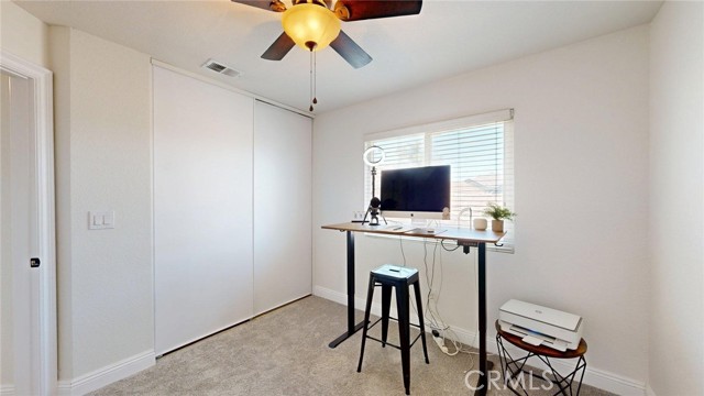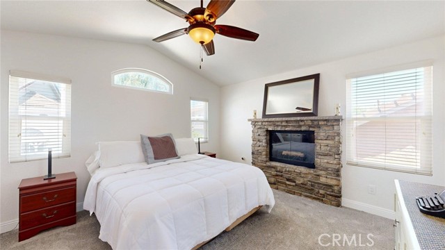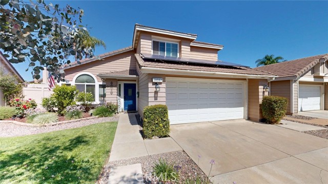 Welcome to MENIFEE LAKES, with scenic trails, LAKE ACCESS, and community amenities. This beautifully maintained home in the desirable MENIFEE LAKES community, offers access to fishing-friendly lakes, walking trails, a COMMUNITY POOL, and a rec center for events and gatherings. This home features a bright, OPEN FLOOR PLAN with high ceilings and abundant natural light. Upgraded granite kitchen is open to the family room and looks out on the manicured and fenced back yard. Upstairs, the primary suite includes a cozy fireplace, ensuite bath with dual vanities, soaking tub, and a WALK-IN CLOSET. Flexible guest rooms are ideal for a home office, guest space, or additional living area. The low-maintenance back yard includes a COVERED PATIO, perfect for relaxing or entertaining. Additional highlights include updated bathrooms, ample storage, attached garage, and ENERGY-EFFICIENT features including solar panels on a Power-Purchase Agreement. Ideally located with easy access to the 215 FREEWAY and the Newport services, shopping and dining developments. MT. SAN JACINTO COLLEGE, Bell Mountain Middle School, and Wheatfield Community Park are nearby.