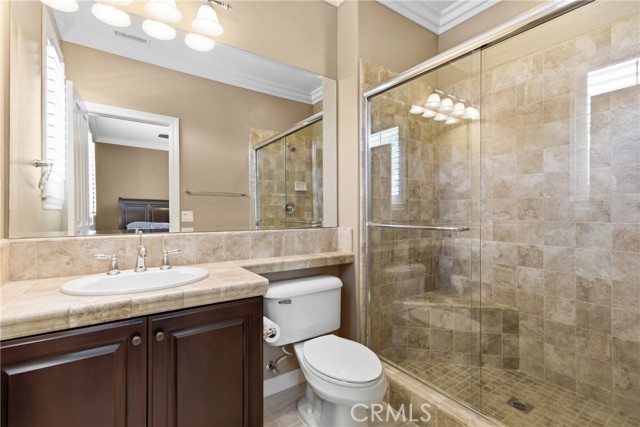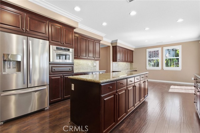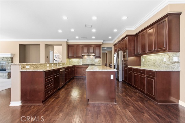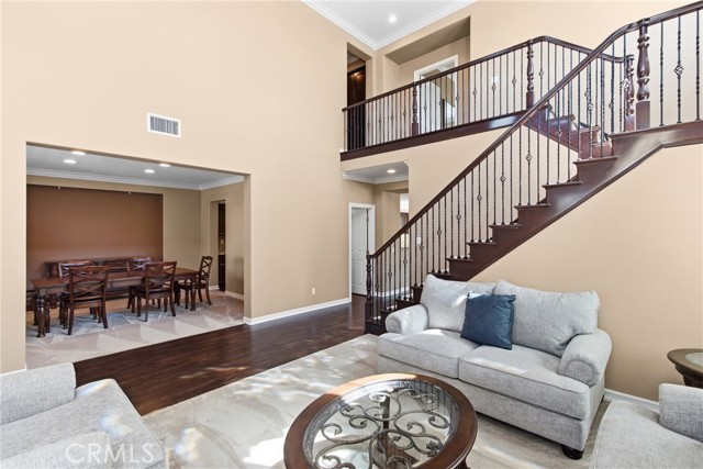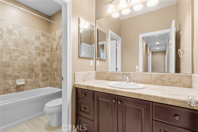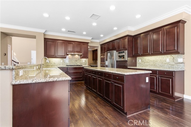Welcome to this beautifully maintained home in the highly sought-after Wolf Creek community of South Temecula, proudly offered by the original owner where pride of ownership is evident from the moment you arrive. Step inside to find stunning wood flooring & soaring ceilings that create a warm and inviting atmosphere. The thoughtfully designed floor plan features a spacious kitchen with granite countertops, stainless steel appliances, double ovens, a generous eating area and seamless flow into the family room complete with a cozy fireplace and ceiling fan perfect for everyday living and entertaining. At the front of the home, you’ll find a formal living room, along with a separate dining room connected to the kitchen through a convenient butler’s pantry and an additional walk-in pantry, offering ample storage and functionality. The main level includes a private bedroom with its own en-suite bathroom, ideal for guests or multi-generational living, as well as a separate half bath for added convenience. Upstairs, you’ll find 2 additional bathrooms & five bedrooms, including two that share a charming balcony perfect for enjoying morning coffee while taking in scenic views, including the Temecula hot air balloons. The oversized primary suite offers a true retreat with dual closets, separate tub and shower, and dual sinks. A well-appointed laundry room with sink and cabinet space is also located upstairs. Throughout the home, you’ll appreciate quality upgrades including plantation shutters, crown molding, upgraded baseboards and plush carpeting with upgraded padding, all contributing to a refined and comfortable living experience. The backyard is designed for both relaxation and entertaining, featuring lush landscaping, block wall privacy, a built-in BBQ, firepit, and a spacious side yard with raised garden beds for gardening enthusiasts. A four-car garage provides ample space for vehicles, storage and recreational toys. Residents of Wolf Creek enjoy access to exceptional amenities including a pool, spa, gym, meeting spaces and year-round community events. Ideally located within walking distance to parks, including Birdsall Sports Park, and top-rated schools such as Great Oak High School, Luiseno Elementary, and Gardner Middle School. Conveniently situated near Pechanga Resort, the I-15 freeway, shopping, dining, Old Town Temecula, and Temecula’s renowned wineries. This home has it all at a price you can’t pass up. Call today for your private showing.