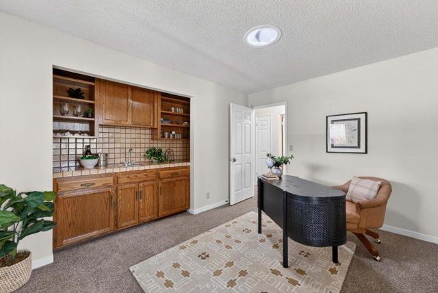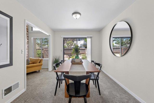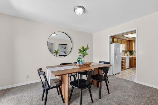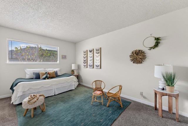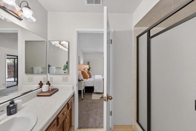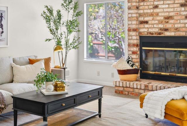 Beautifully updated single-level corner unit in the desirable Cambridge Village gated community! This move-in ready 3-bedroom, 2-bath home features new interior paint, brand-new carpet, and updated light fixtures throughout. The light-filled living room offers vaulted ceilings with exposed beams and a charming brick wood-burning fireplace, creating a warm and inviting space. Large windows and sliding doors provide abundant natural light and access to a private patio. The functional layout includes a spacious dining area and a well-maintained kitchen with ample cabinetry. The primary suite features mirrored closet doors and direct patio access. Enjoy community amenities including a clubhouse, pool, and sport court. Conveniently located within walking distance to shopping, dining, and everyday essentials. Clean, bright, and move-in ready!