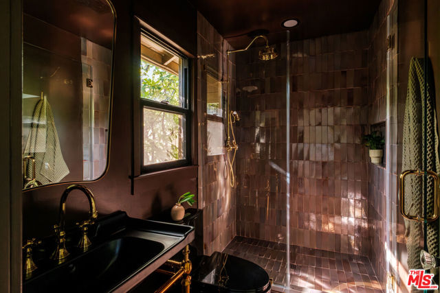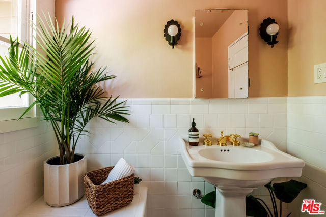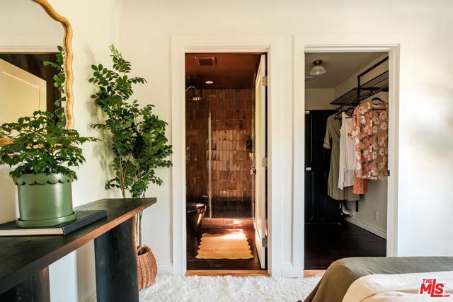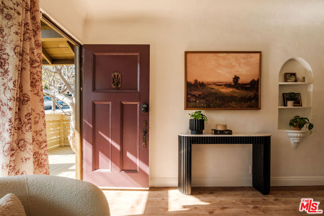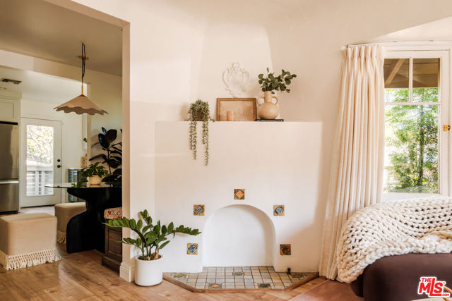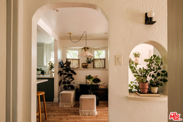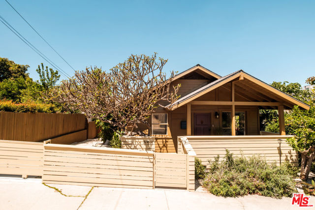 Nestled in the heart of Silver Lake, this timeless craftsman blends classic character with thoughtful modern updates just moments from the energy of Sunset Boulevard. The home carries a rare and storied past. In 1935, owner Laura D. Misson relocated it from Hollywood to its current setting, imbuing the property with a sense of history that's genuinely hard to find. Original architectural details remain beautifully intact throughout: graceful archways, delicate plaster work, and a charming faux fireplace that anchors the home with warmth. Behind a welcoming front porch, the bungalow unfolds with ease. The spacious living room is flooded with natural light through a generous bay window, while the dining room is made for entertaining, complete with handsome storage benches and a display shelf. The beautifully updated kitchen strikes the perfect balance of style and function, equally suited to quiet weeknight dinners and effortless gatherings. Both bathrooms have been tastefully renovated the primary bath in particular feels like a private retreat, with moody, spa-like finishes: quietly luxurious. The primary bedroom features a spacious walk-in closet with washer/dryer and customizable Container Store closet system. Thoughtful design moments carry throughout: gorgeous Nickey Kehoe lighting and hardware, and original crystal doorknobs that catch the light just so. Outside, mature (and low maintenance!) landscaping creates a serene and private setting with room to relax, dine, or simply breathe. Enjoy the mature lemon and plumeria trees, and more lush greenery. The converted garage is a standout, functioning beautifully as an art studio or work-from-home space, with custom wood carriage doors that swing open to flood the space with light and air. And the lot itself is a genuine rarity: largely flat and fully usable, offering a true backyard experience that's increasingly hard to come by in Silver Lake. Updated systems are the cherry on top: newer central HVAC, newer roof, foundation updates and seismic retrofitting, upgraded plumbing and electrical. Walkability here is exceptional. Start mornings at Cafe Tropical, grab lunch at Botanica, or meet friends for happy hour at L&E or Greekman's. Sunset Junction, Erewhon, and the eclectic mix of boutiques, coffee shops, and dining along Sunset are all just blocks away. With so much beauty to enjoy, this gorgeous home is chic, full of soul, and convenient to everything.