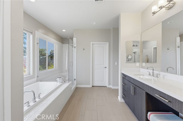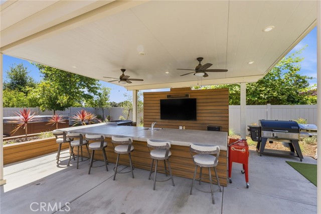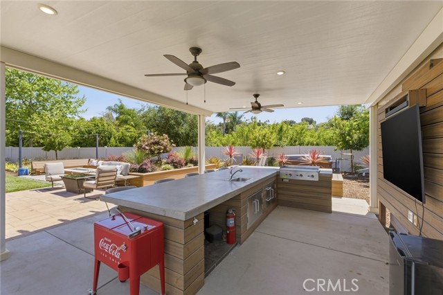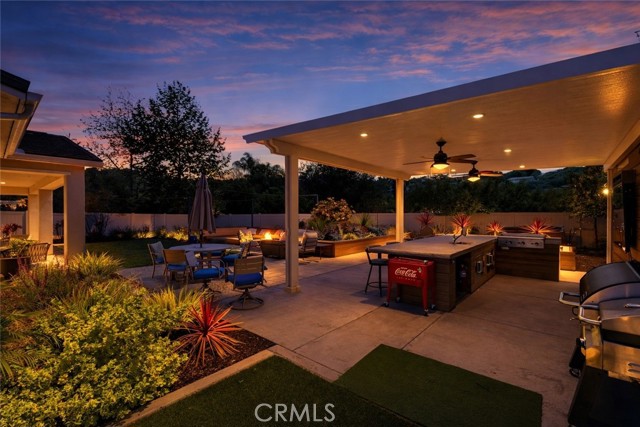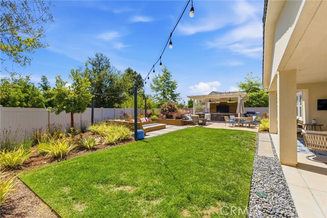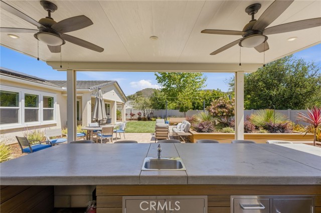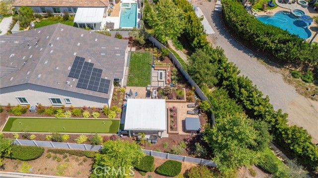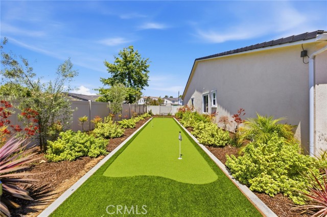 Welcome to your dream home in the heart of Vista where luxury, comfort, and thoughtful design come together in this stunning single-story residence.This beautifully upgraded home offers 4 spacious bedrooms and 4 bathrooms, all centered around an open-concept floor plan designed for modern living.The heart of the home features a massive double-sized island, seamless indoor-outdoor flow with a double slider, and an abundance of natural light enhanced by a solar tube. Step outside into your private backyard oasis fully landscaped and designed for both relaxation and entertaining.Enjoy your own 50-foot PUTTING green, a 121-jet JACUZZI, and a full outdoor kitchen under a pergola, complete with a 30-inch griddle and sink. Mature landscaping includes over seven olive trees and multiple olive trees, all accented with elegant outdoor lighting.Even better all outdoor furniture is INCLUDED, making this home truly move-in ready. Inside, the home continues to impress with two oversized walk-in closets in the primary suite, an alkaline water system, and high-end finishes throughout.Energy efficiency is a major bonus with 19 PAID solar panels.Car enthusiasts and tech-savvy buyers will love the 3-car tandem garage, featuring a Tesla wall charger, two additional 240V outlets, and overhead storage racks for maximum organization.Located in a desirable gated community with NO Mello-Roos, this home offers privacy, security, and long-term value.This is more than just a home it’s a lifestyle upgrade.